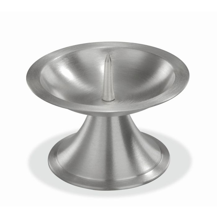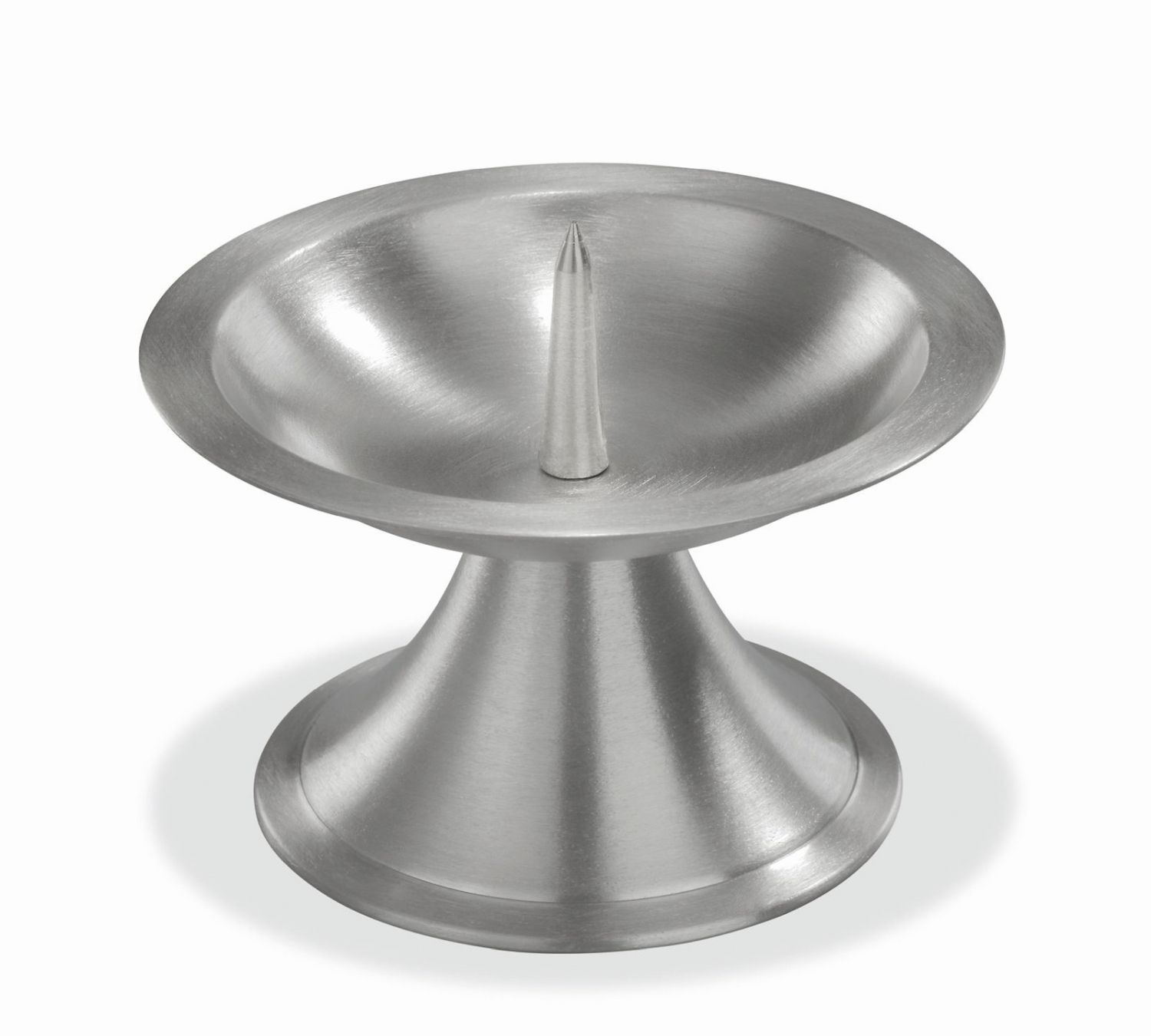 Brass candle holder OLIVERIO with spike, for candles Ø2.8"-3.1"/7-8cm, nickel plated, matt brushed, silver, 2.6"/6,5cm, Ø4.3"/11cm