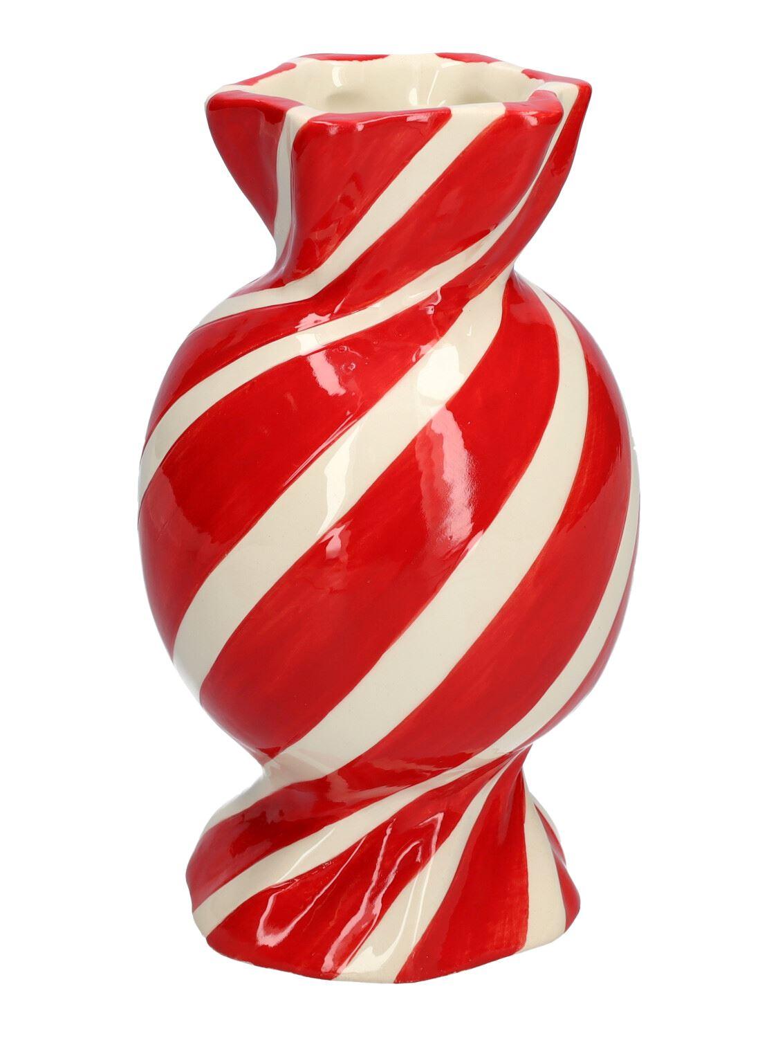 Bulbous single stem vase in the shape of a sweet AMIEL made of ceramic, with diagonal lines, red-white, 8"/20cm, Ø5.5"/11,5cm