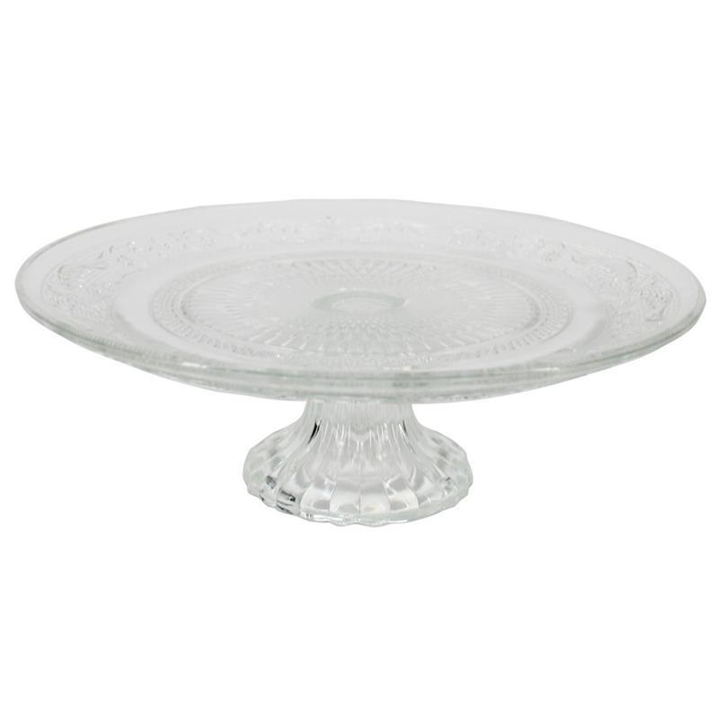 Cake plate on foot ALVATIR, glass, pattern, clear, 3.1"/7,8cm, Ø9"/22,8cm