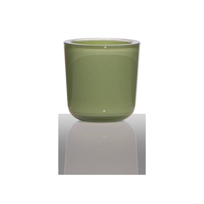 Candle glass for tea lights NICK, grass green, 3"/7,5cm, Ø3"/7,5cm