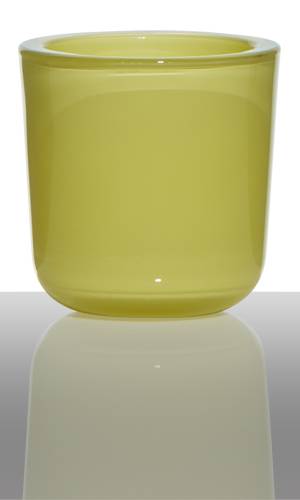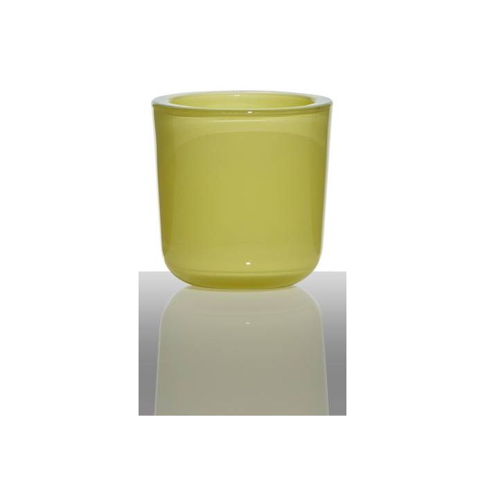 Candle glass for tea lights NICK, yellow-green, 3"/7,5cm, Ø3"/7,5cm