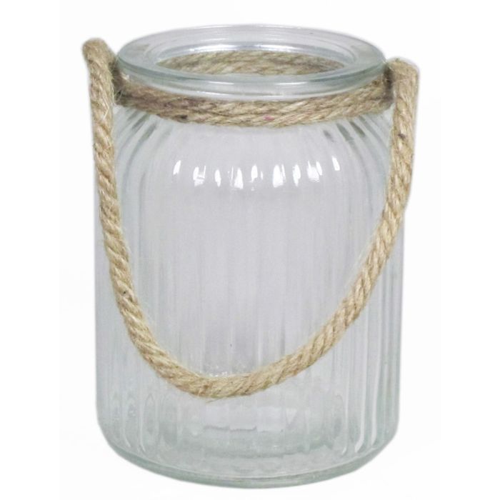 Candle jar ADANNA with handle, vertical stripes, clear, 5.7"/14,5cm, Ø4.3"/11cm