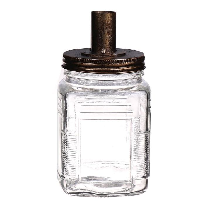 Candlestick holder NENEKONI on glass bottle, clear-bronze, 7"/18,5cm, Ø3.7"/9,5cm