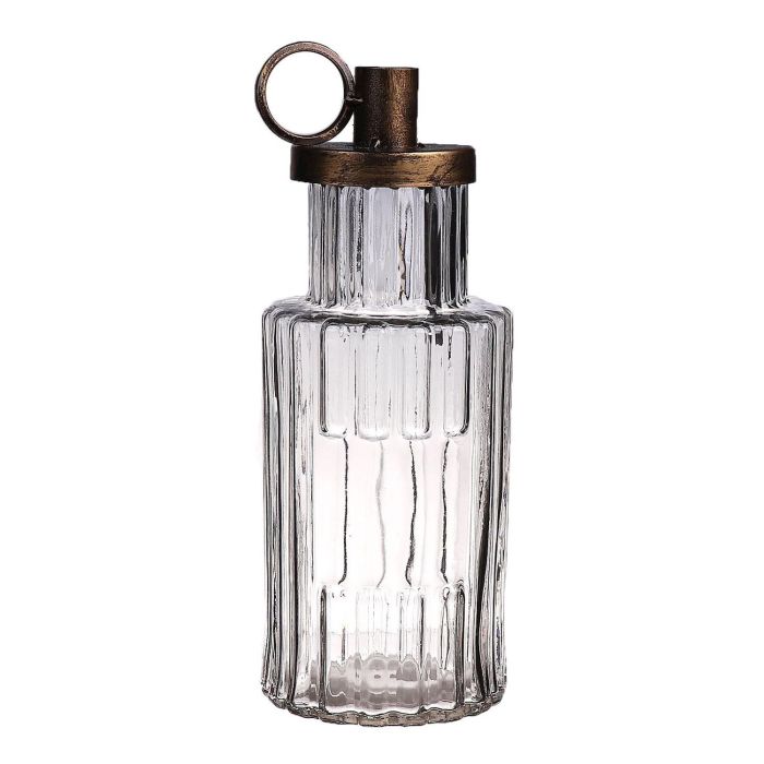 Candlestick holder NENEKONI on glass bottle, handle, pattern, clear-bronze, 10"/26cm, Ø4"/10cm