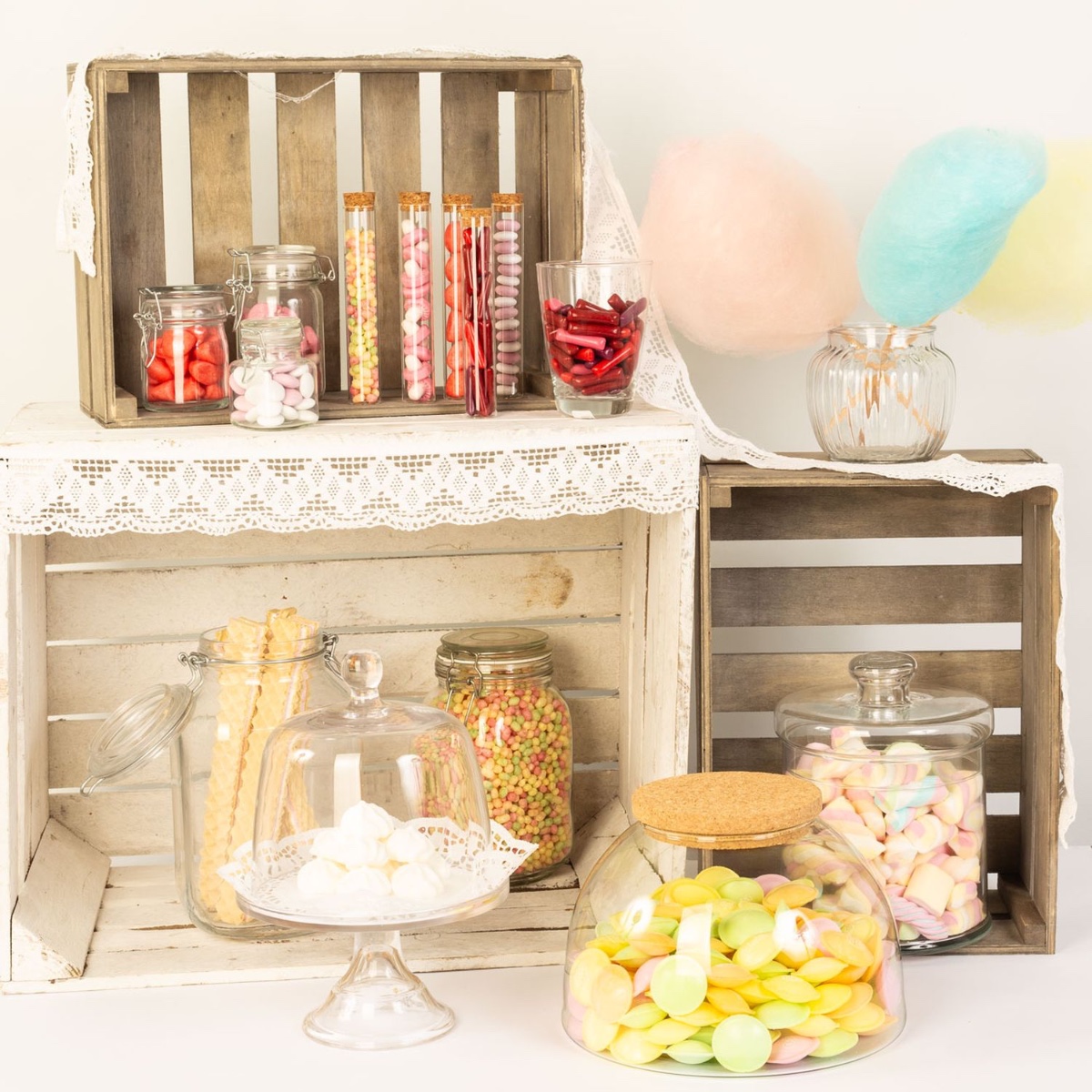 Sweets for my sweet, sugar for my honey! A wedding is a wonderful event that only happens once. How you celebrate it is up to you. However, you can always see trends that jazz up the festivities and make them more modern. For example, a candy bar. Sitting around waiting for dessert is a thing of the past. Nowadays, the newlyweds simply set up a candy bar where all the guests can help themselves to whatever they fancy. The good thing about this is that it makes it much easier for guests to talk to each other and get to know each other better. And it also gives the children the opportunity to meet each other, provided there is no children's corner. Storage jars are filled with various delicacies. There are no rules here. Whatever tastes good is provided. Our wide selection of storage jars and serving plates, cake plates and glasses offers a suitable container for every treat. Shop the look!
