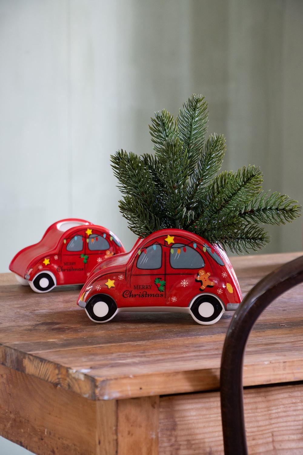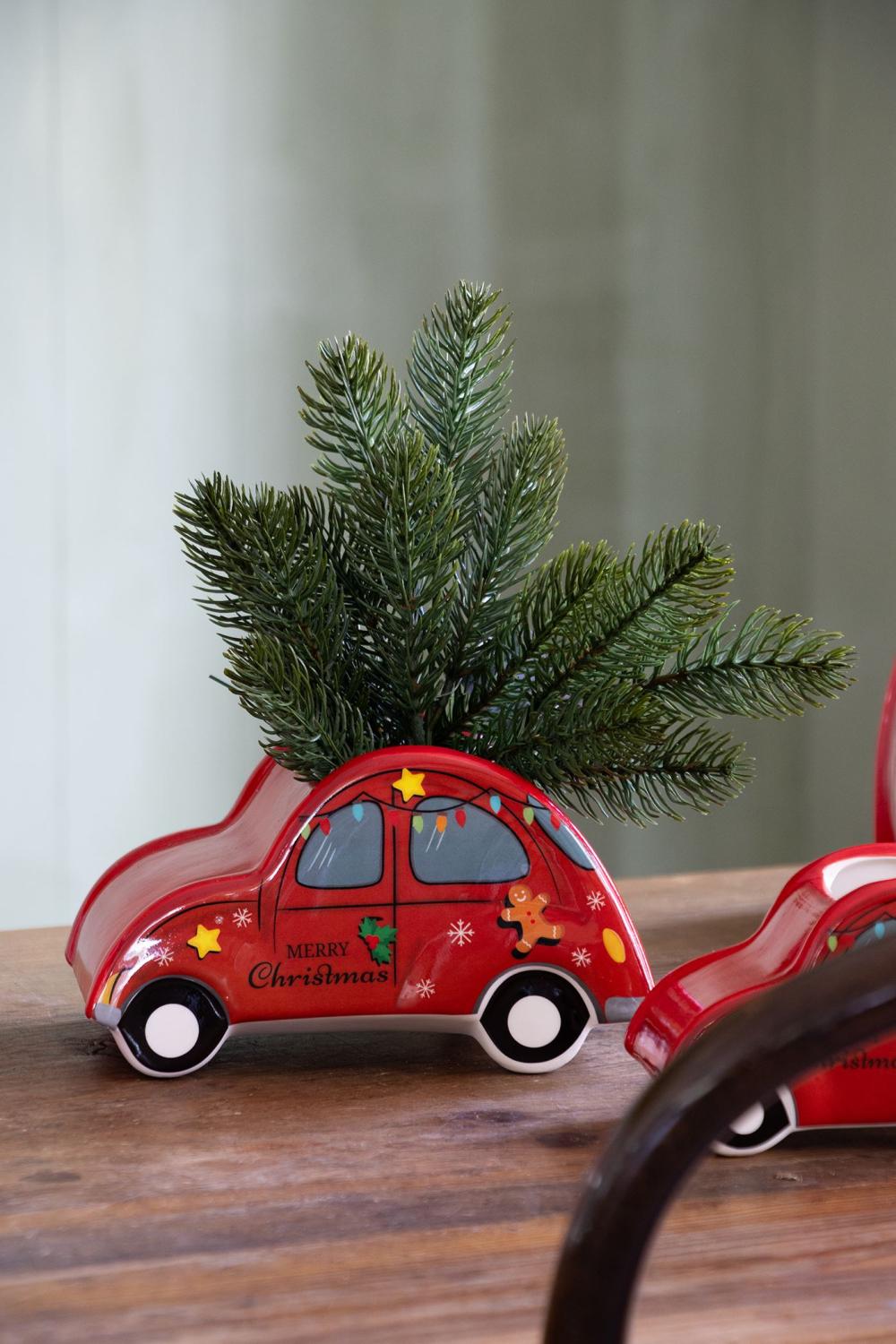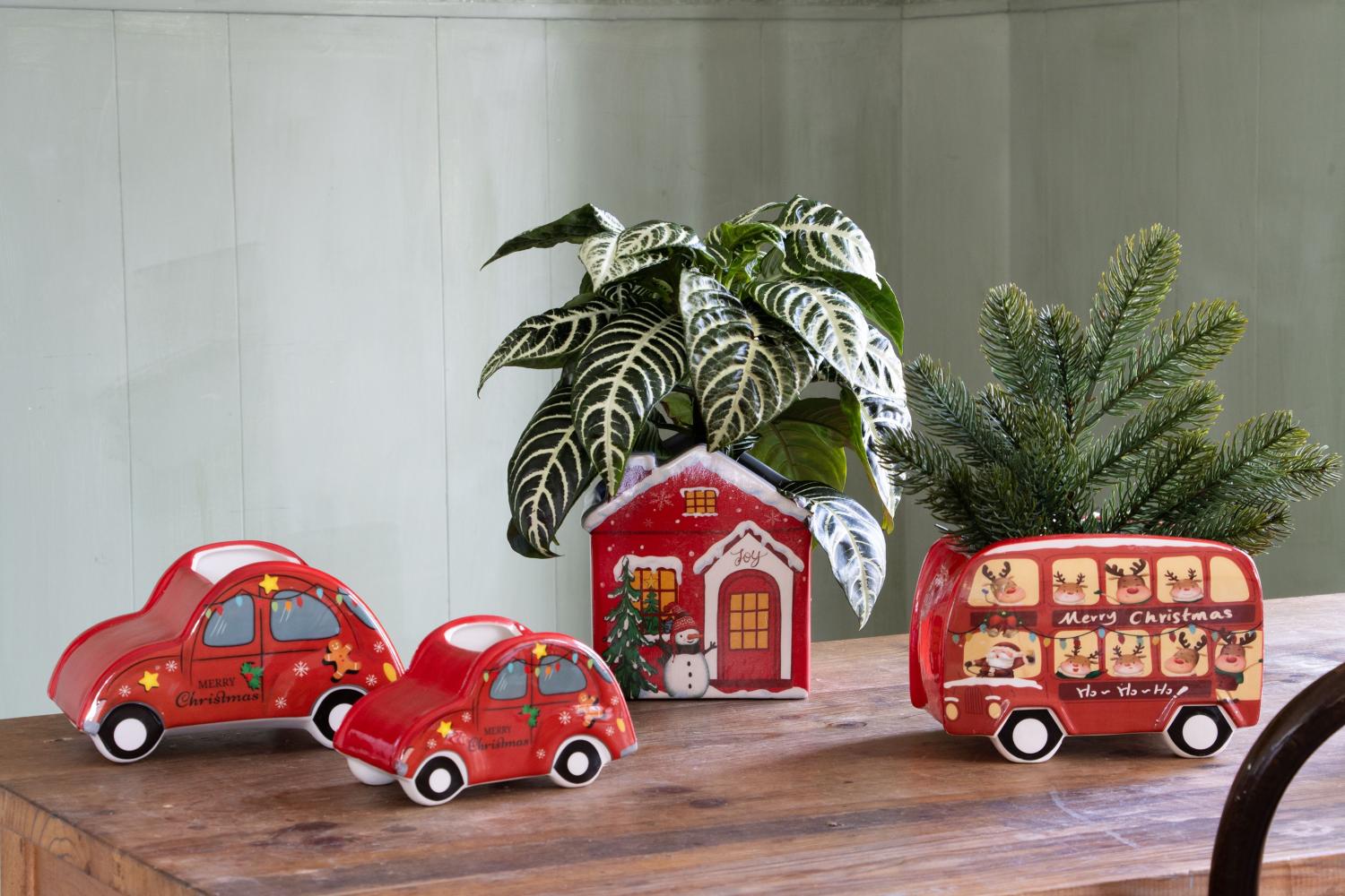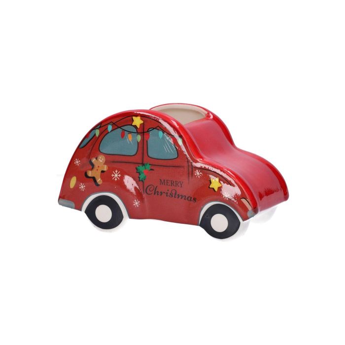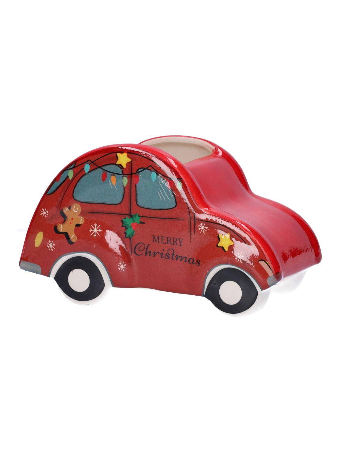 Ceramic Christmassy plant pot in car shape ARMAS, red, 19x12x11cm