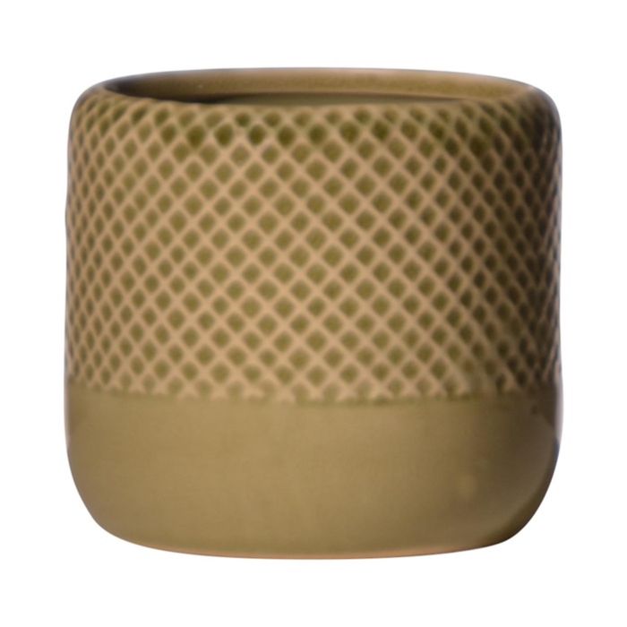 Ceramic flower pot DANYLO, diamond pattern, green-brown, 4.1"/10,5cm, Ø4.7"/12cm