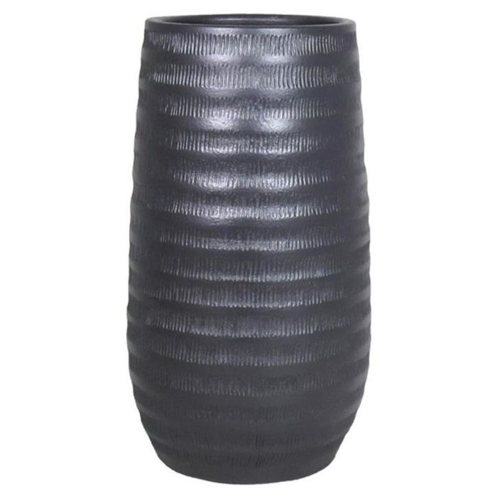 Ceramic flower vase TIAM with grooves, black matt, 20"/50cm, Ø10"/26cm