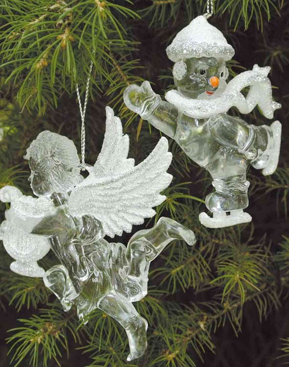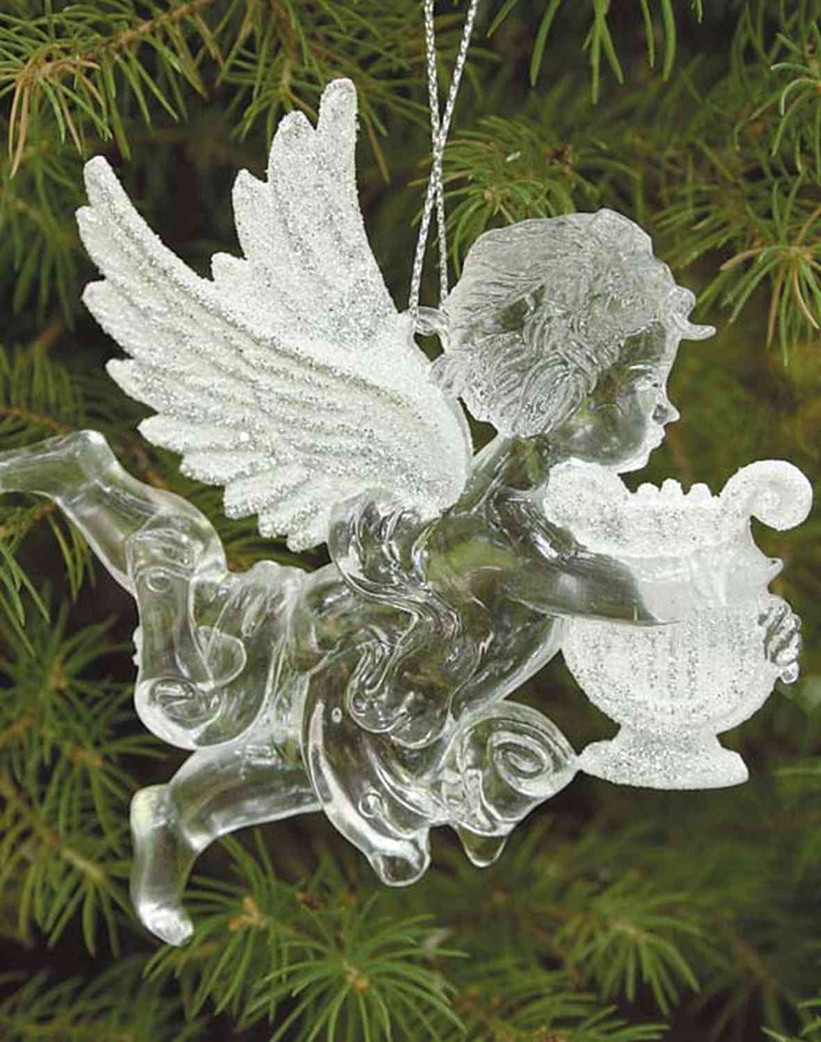 Christmas angel for hanging LINDY, 2 pieces, harp, lyre, glitter, silver-white, 3.5"x4"/9x10cm