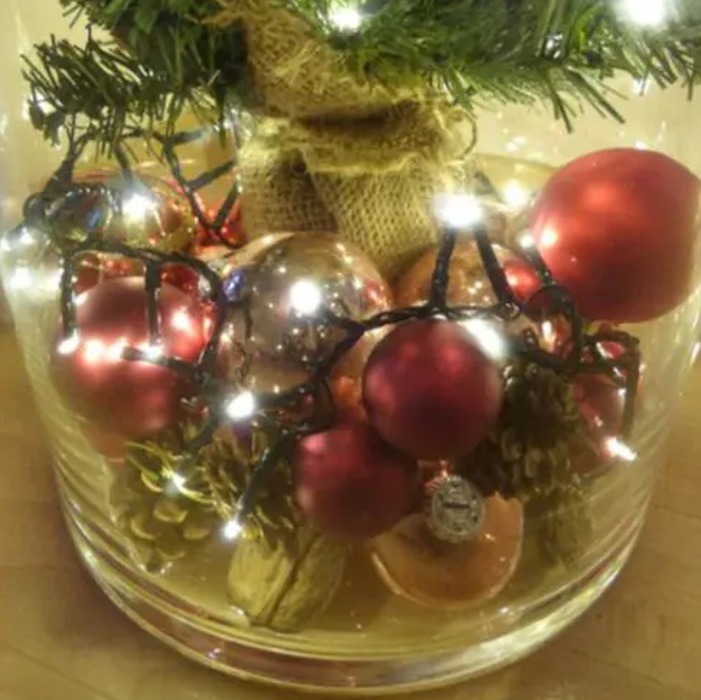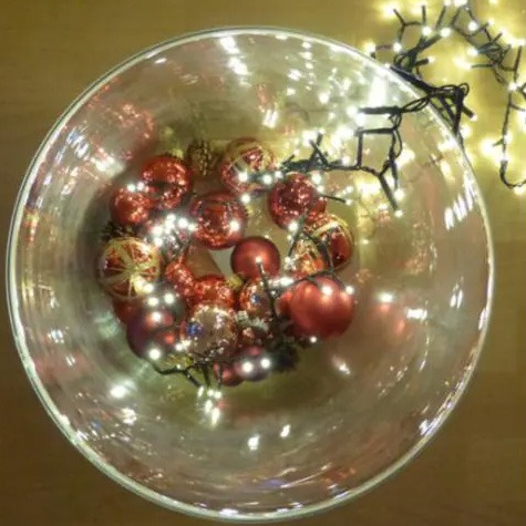 Small but perfect! This Christmas look proves that seemingly plain vases offer plenty of room for creativity. The tall, cylindrical, transparent vase beautifully displays both the decoration and the lighting inside. With red and gold Christmas baubles and wintery scatter decorations, this decorating idea is based on classic colours for the Advent and Christmas season. The long fairy lights can be draped over the decoration and around the tree, making the look a festive eye-catcher in any interior. Shop the look!