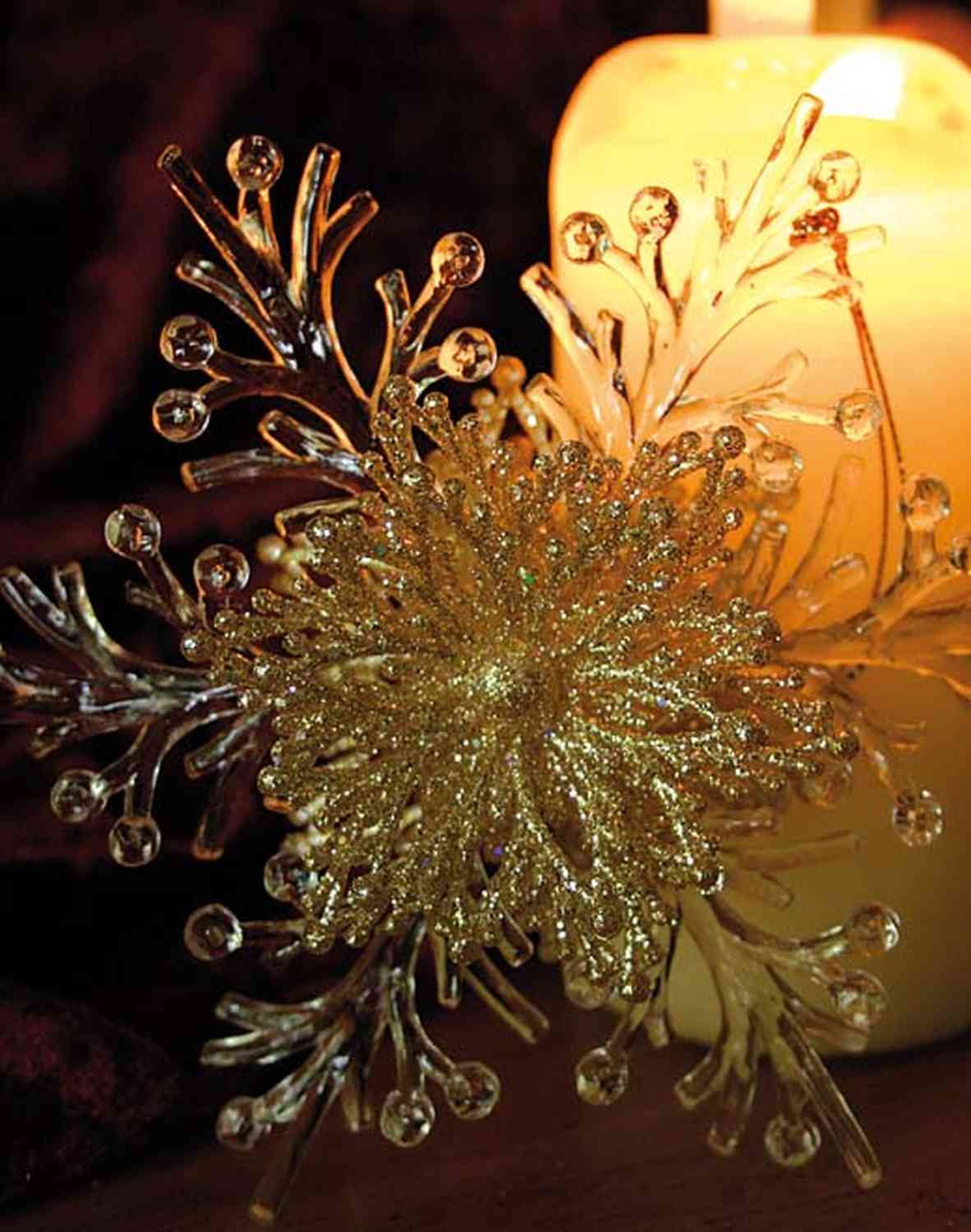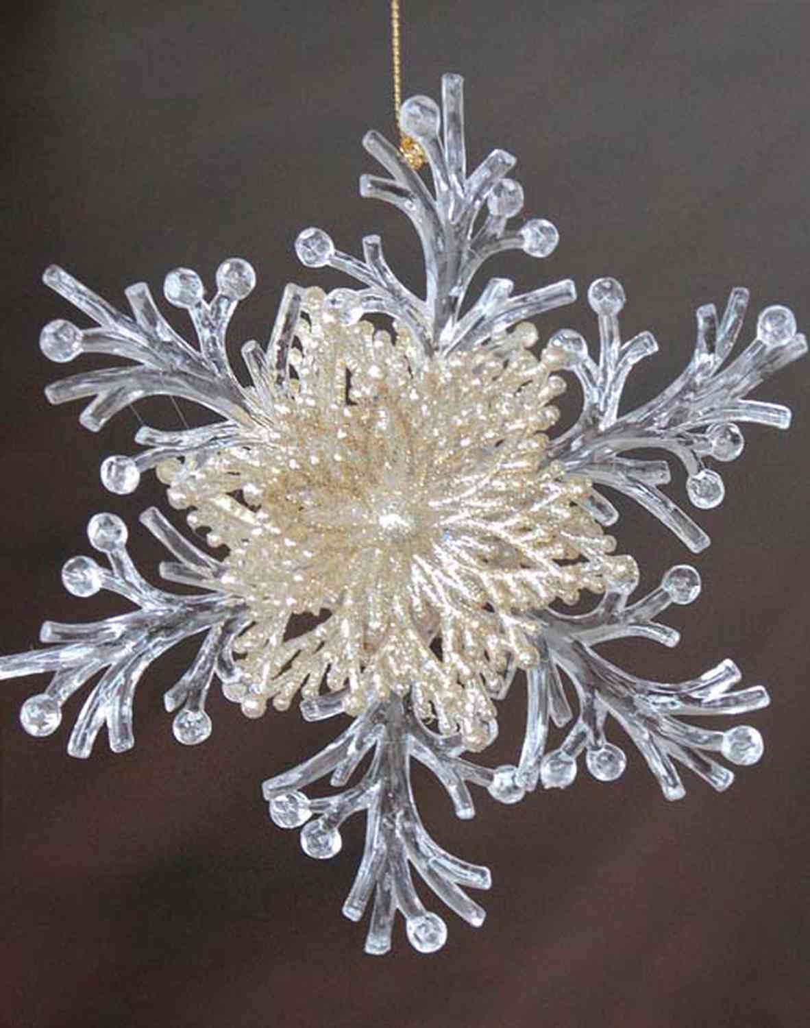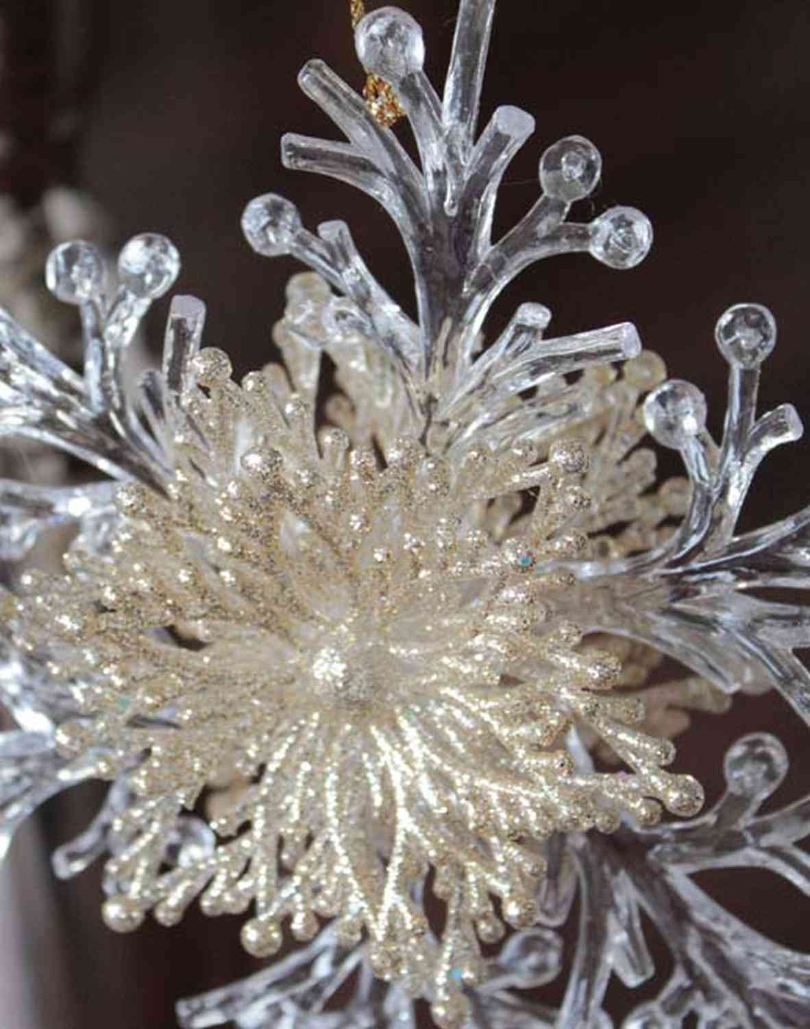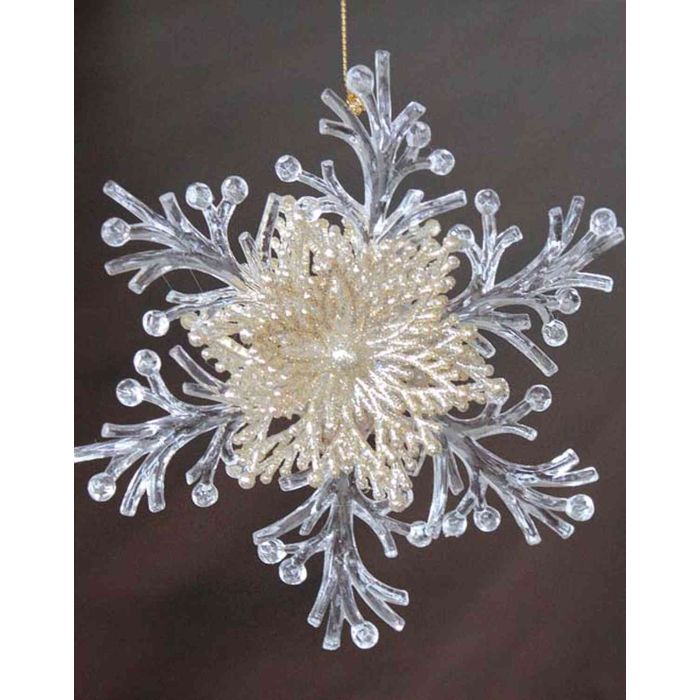 Christmas ornament snowflake BALADI, acrylic, glitter, transparent-gold, Ø6"/15cm