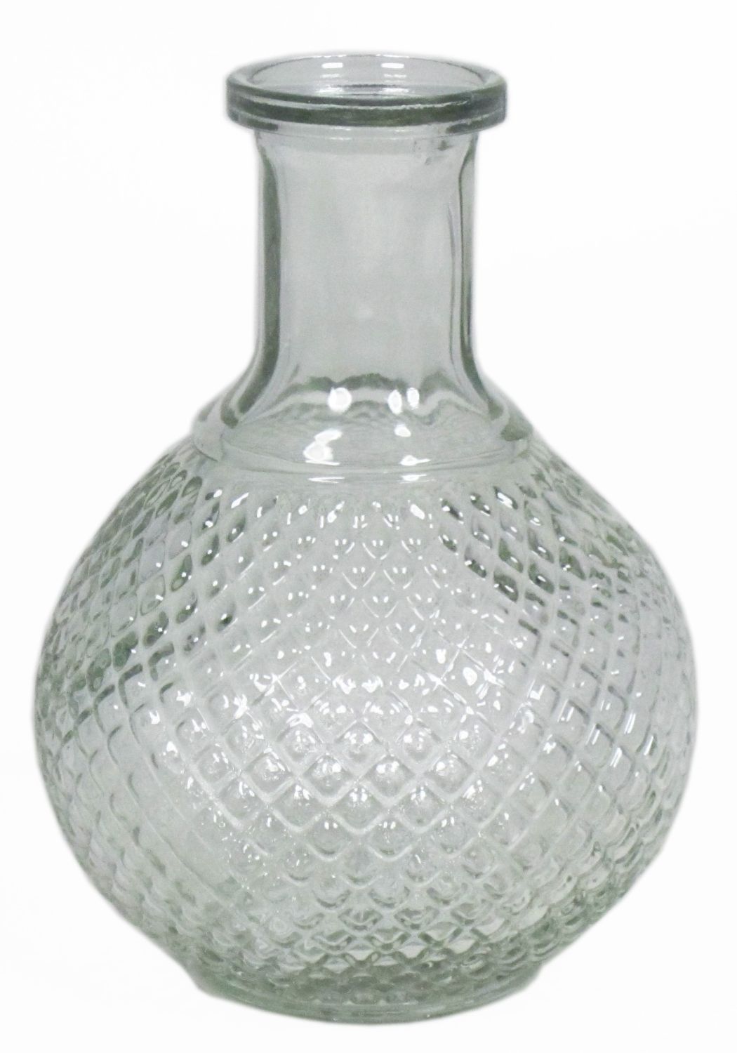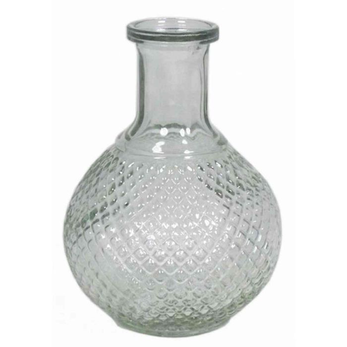 Clear glass bottle DONKA with diamond pattern, 6"/15cm, Ø4.3"/11cm