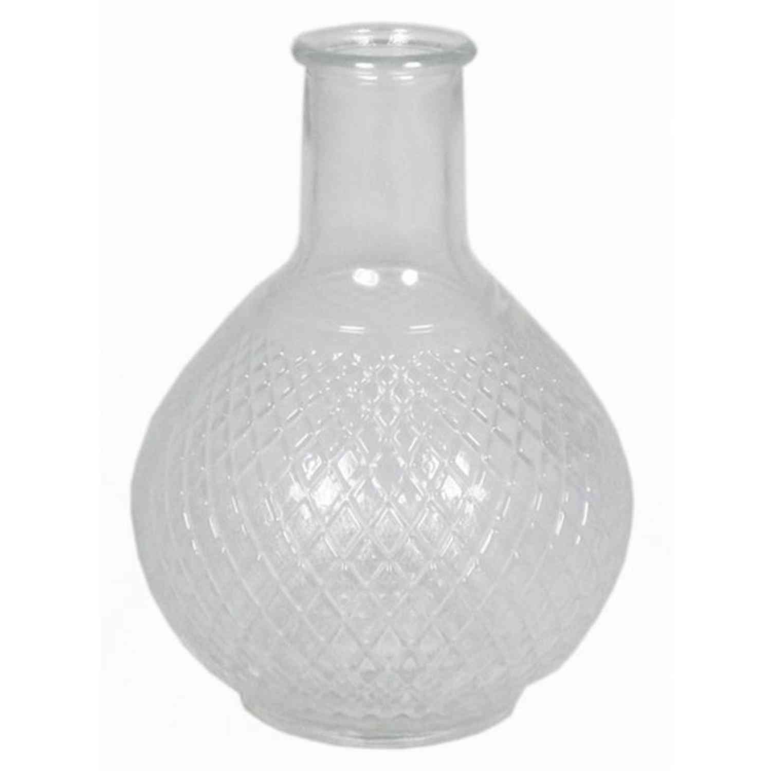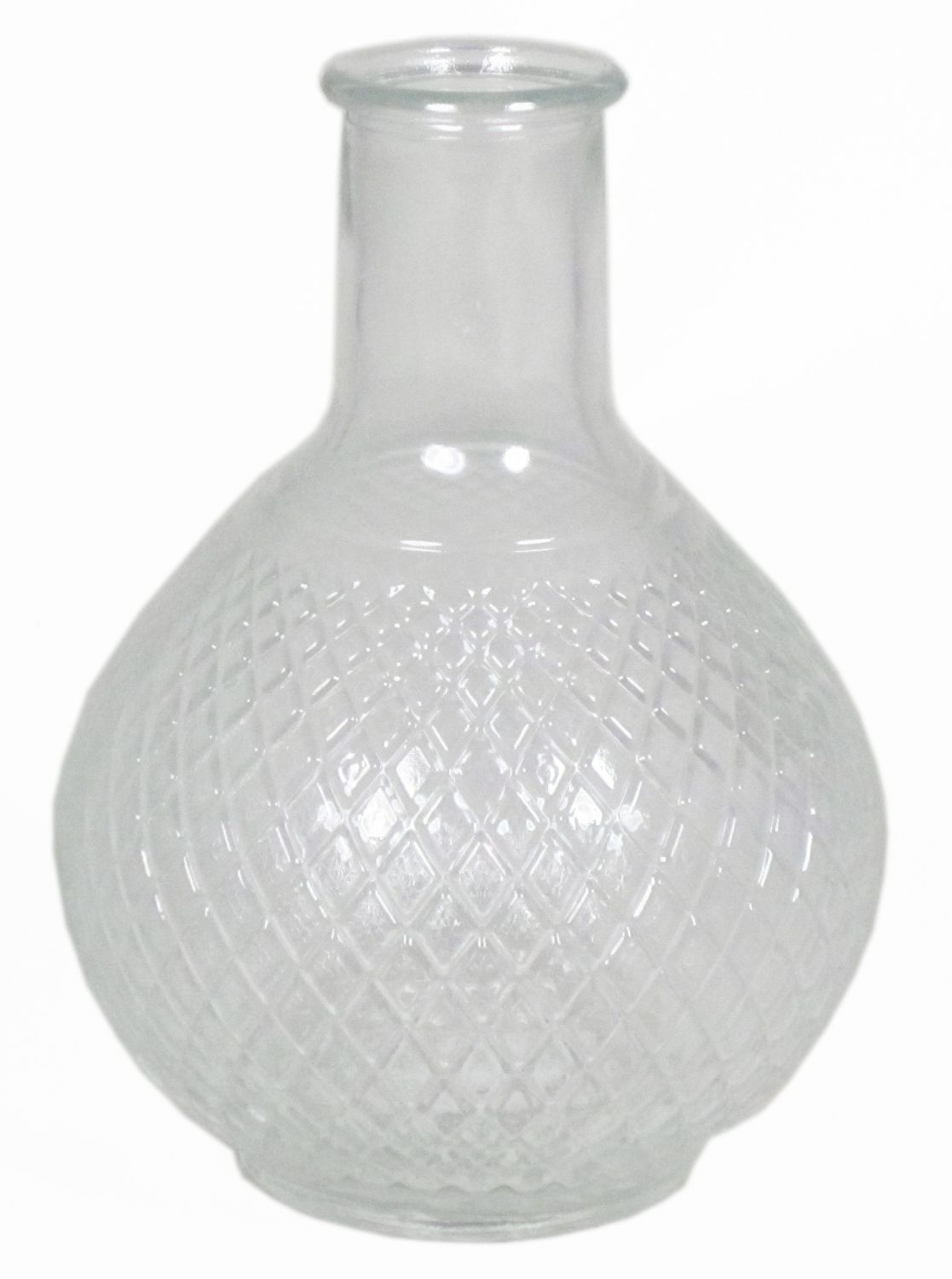 Clear glass bottle DONKA with diamond pattern, 7.3"/18,5cm, Ø5.3"/13,5cm