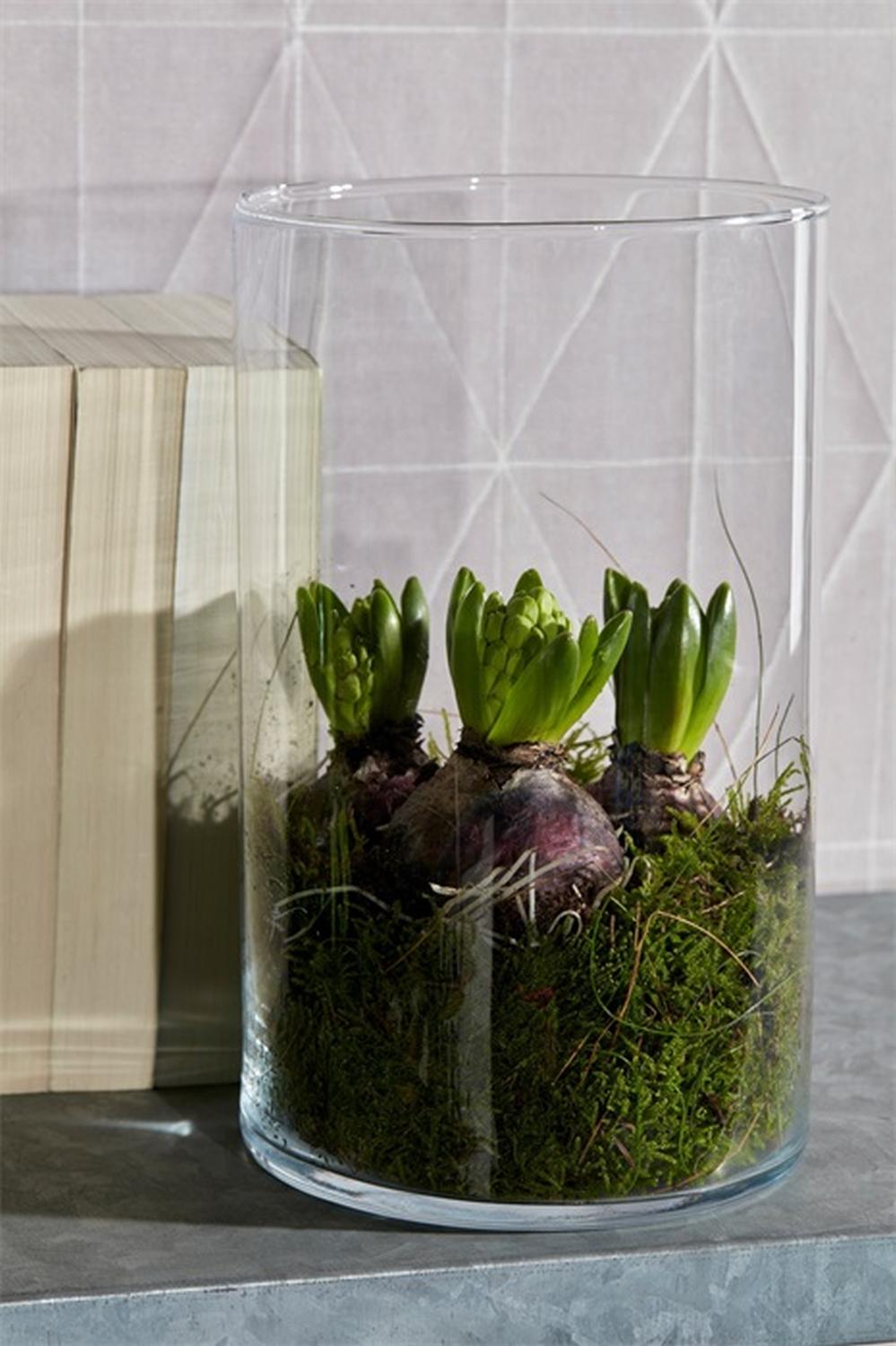 Cylindrical glass vase SANYA EARTH, clear, 10"/25cm, Ø7"/18cm