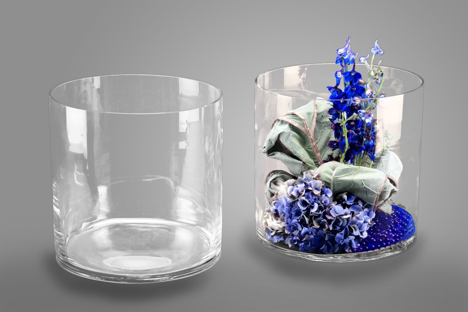 Cylindrical lantern SANSA EARTH, glass, clear, 12"/30cm, Ø12"/30cm