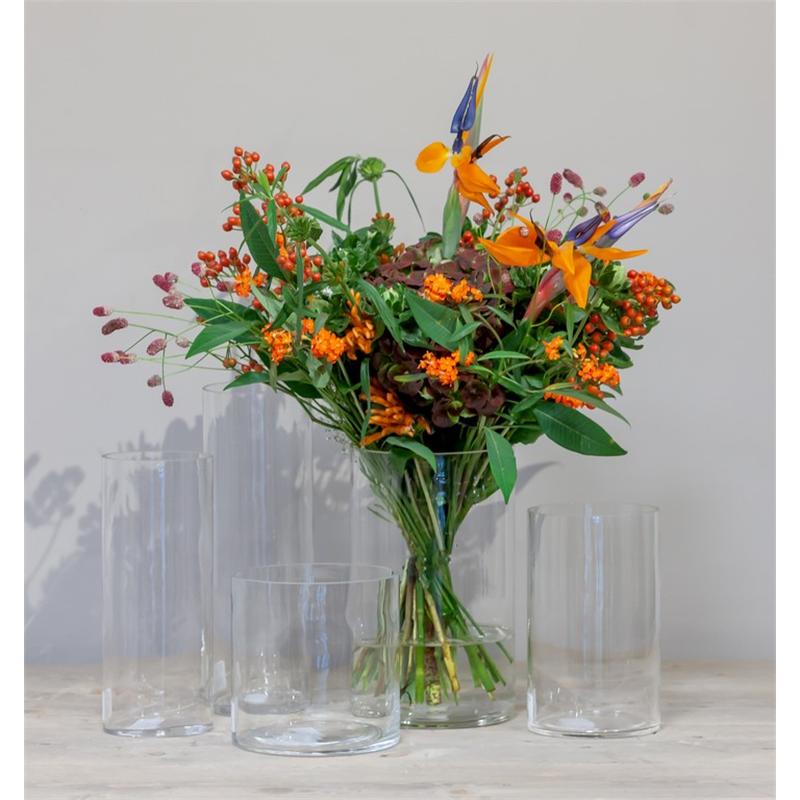 Cylindrical vase made of glass SANSA OCEAN, recycled, clear, 10"/25cm, Ø4"/10cm