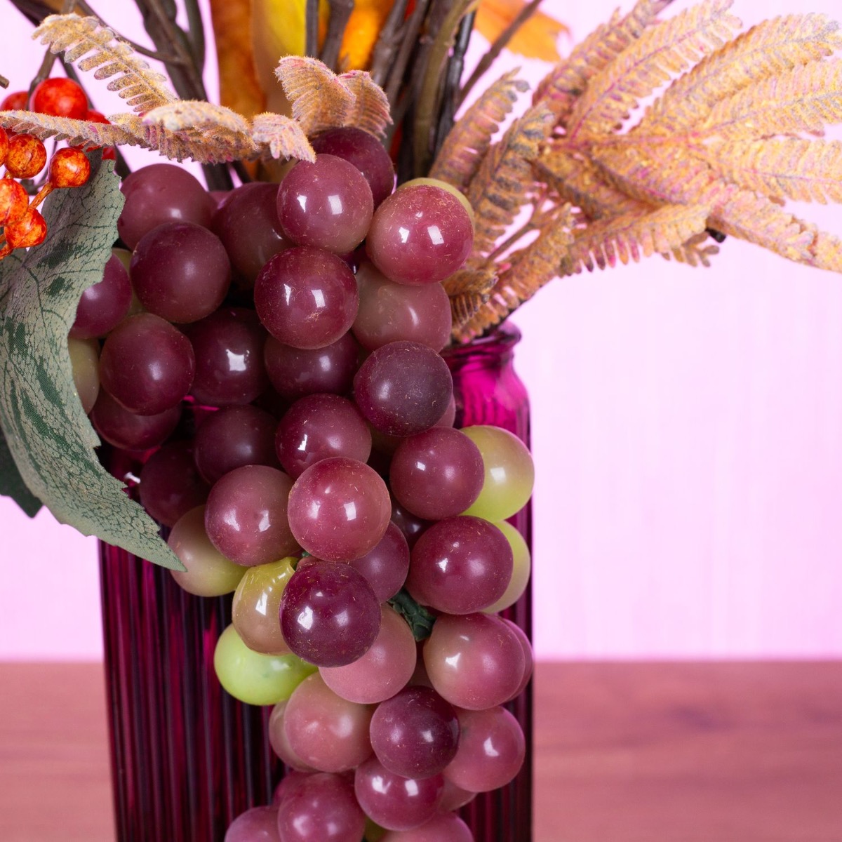 Design tip: Cut the branches to different lengths and place them in the vases. Bend some of the branches downwards so that they harmonise with each other. The bunch of grapes can also simply be placed in the large vase or attached to a branch. Easy to recreate!