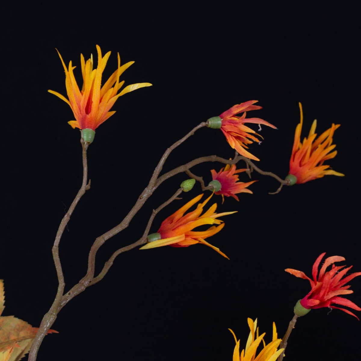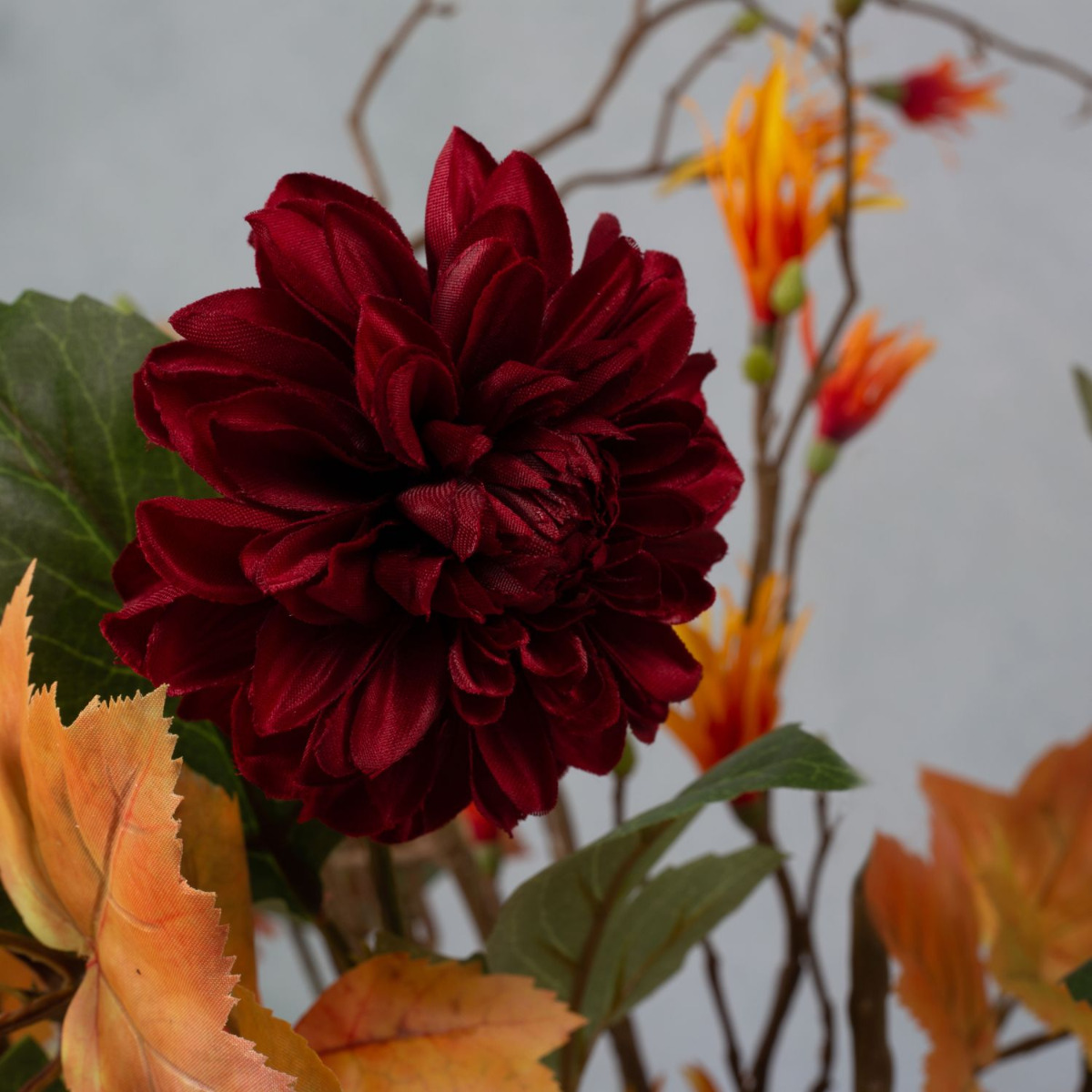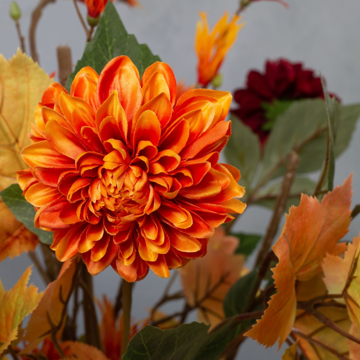 Nature's colour explosion!You can't make autumn more classic. Yellow-orange autumn leaves dance around the bright dahlias in red and orange. This bouquet looks as if it had been picked during an autumn walk. Except that this one will last longer. The colourful maple leaves simply go with any autumnal arrangement and brighten up any room. Shop the look!