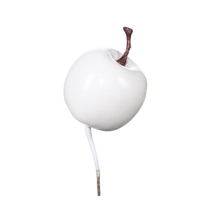 Decorative apple NIPON with stem, 6 pieces, white, 1"/2,5cm