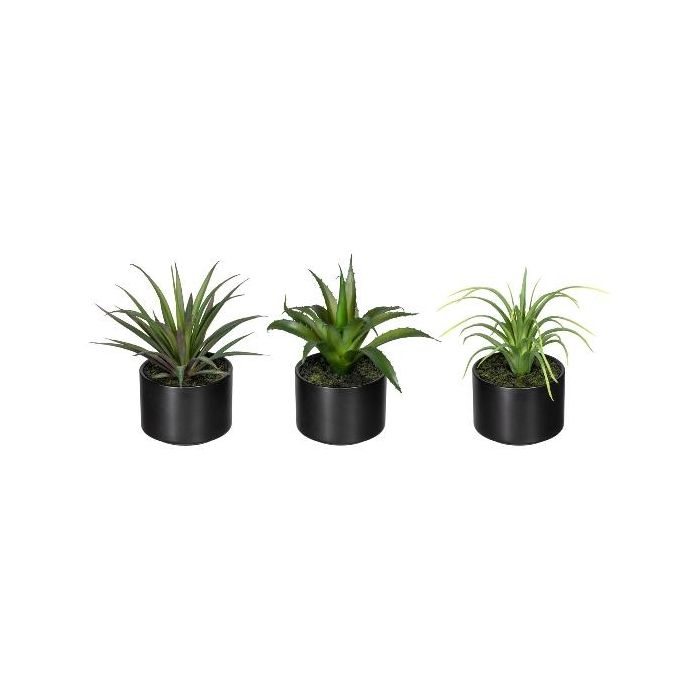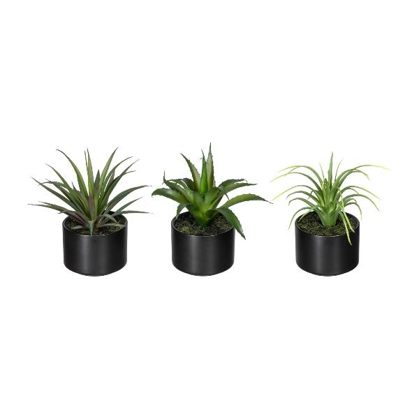 Decorative arrangement of succulents FLUKE in ceramic pot, 3 pieces, green, 6"/15cm