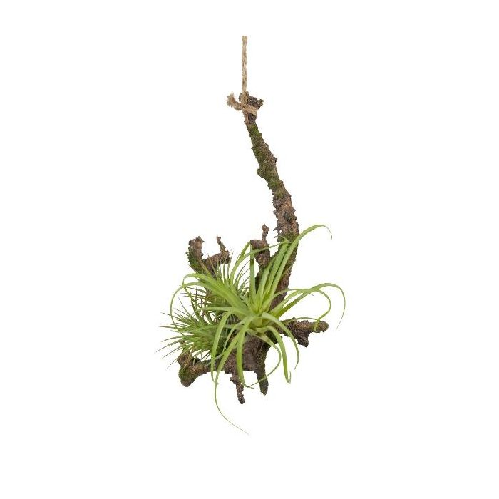 Decorative arrangement of tillandsia stricta SNARFY on a branch, hanging, green, 6"x6"/15x16cm