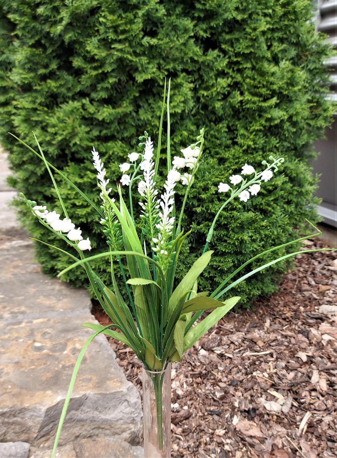 - The bouquet consists of lavender, lily of the valley and grasses, crafted from high-quality material in a natural look