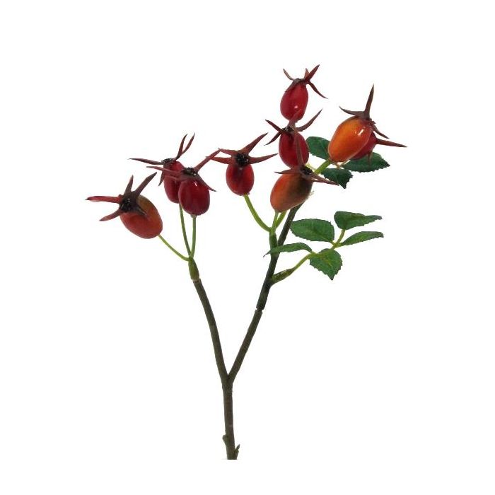 Decorative branch Dog rose BRULFI with rose hips, orange, 10"/25cm