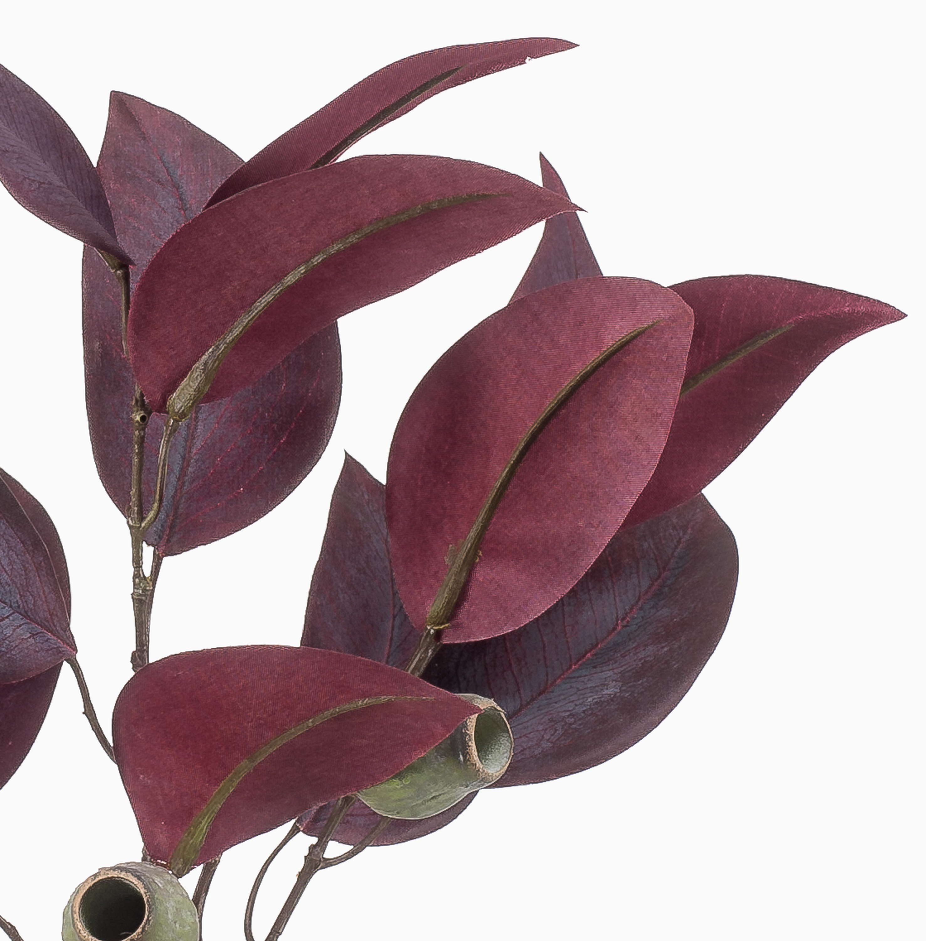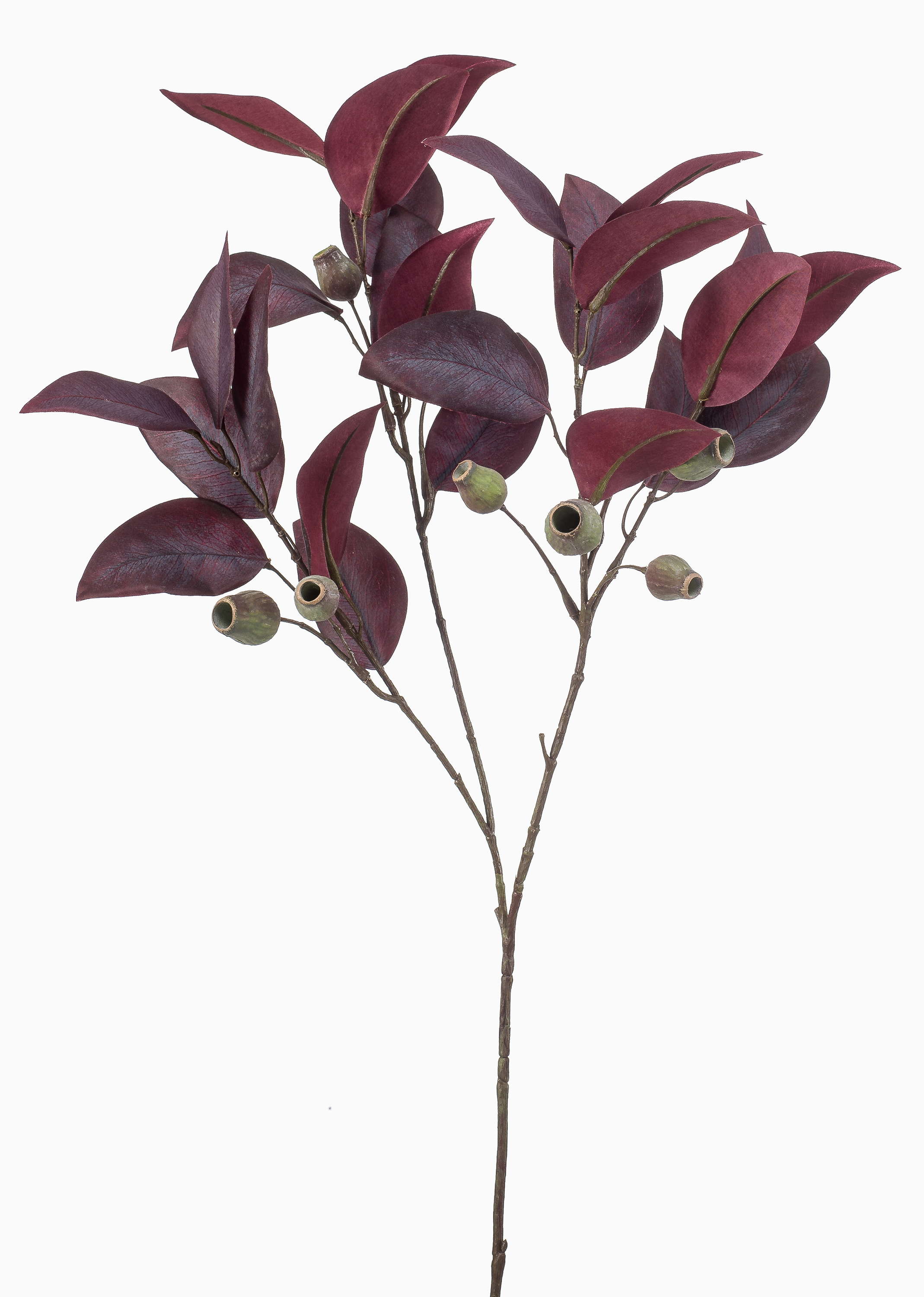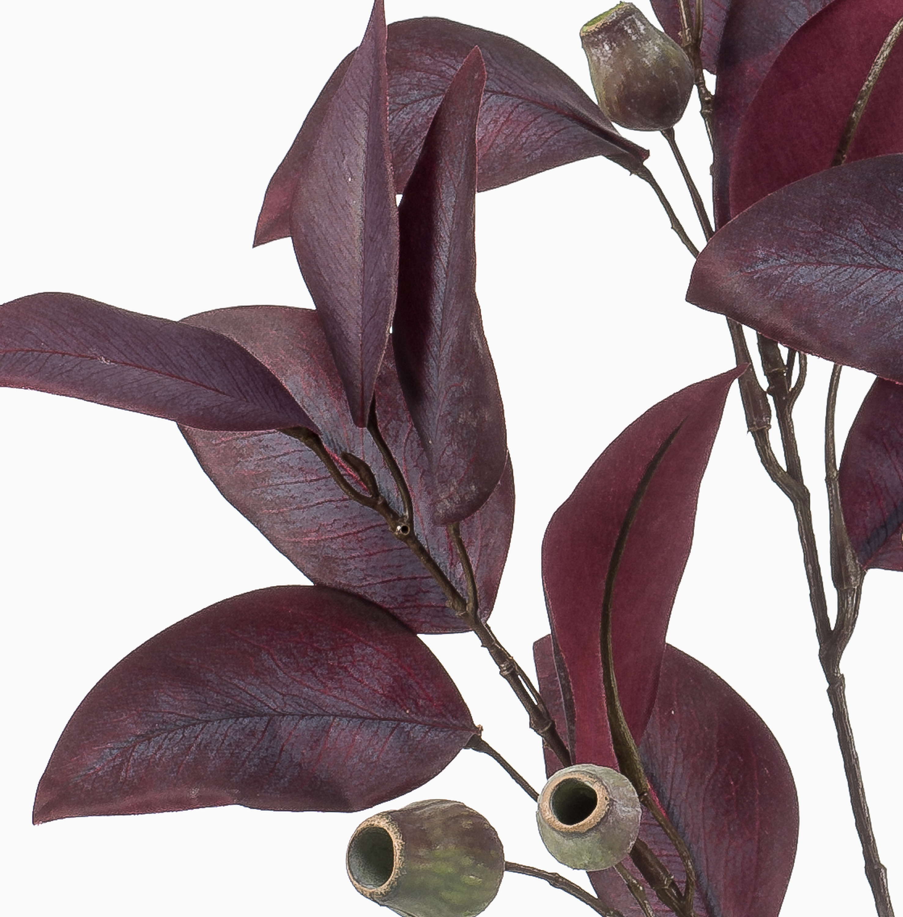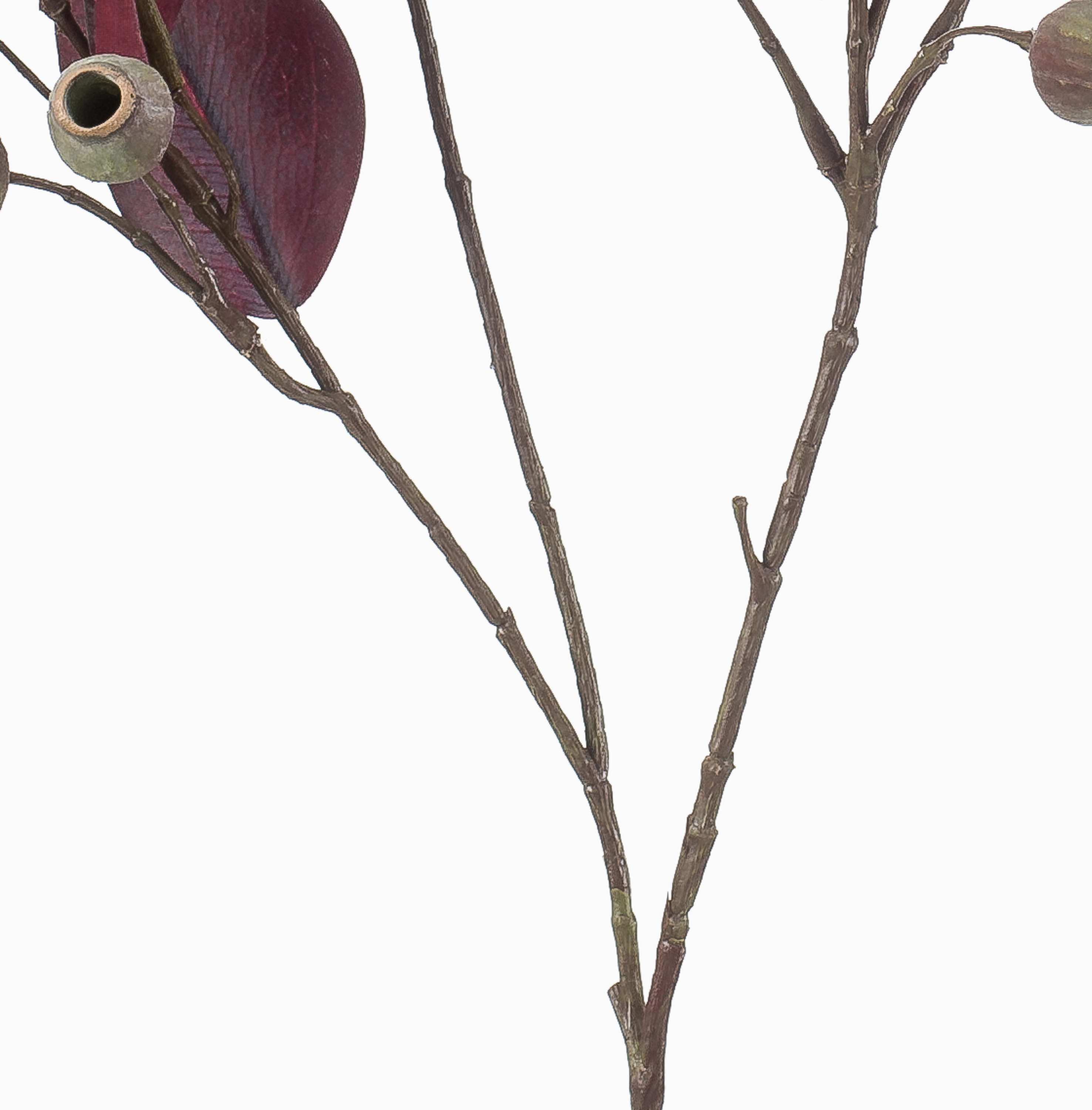 Decorative branch Eucalyptus VIZIMIR with fruits, burgundy red, 31"/80cm