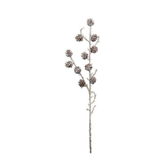 Decorative branch Larch BORIKA with cones, frosted, white-brown, 33"/85cm