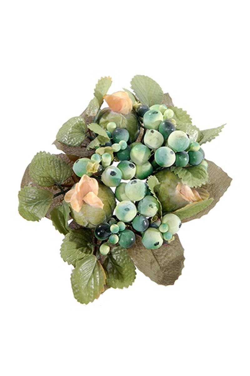 Decorative candle wreath STELLAN with snowberries, buds, green-blue, Ø 3.9"/10cm