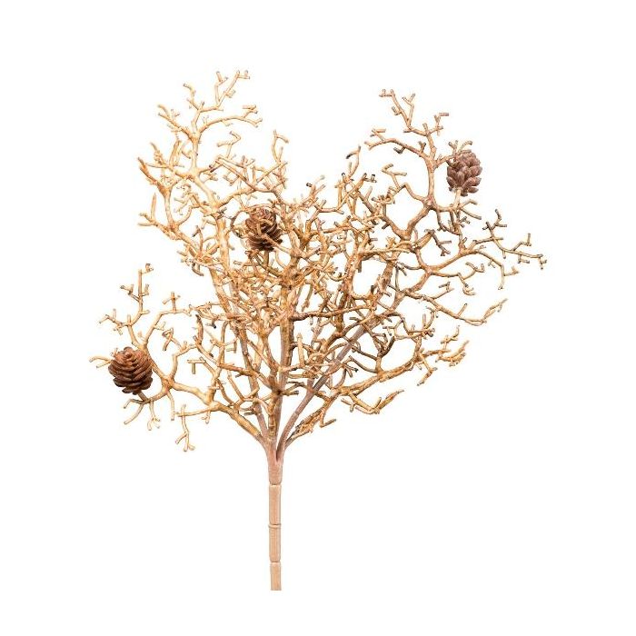 Decorative coral branch AGAMS with cones, brown, 12"/30cm