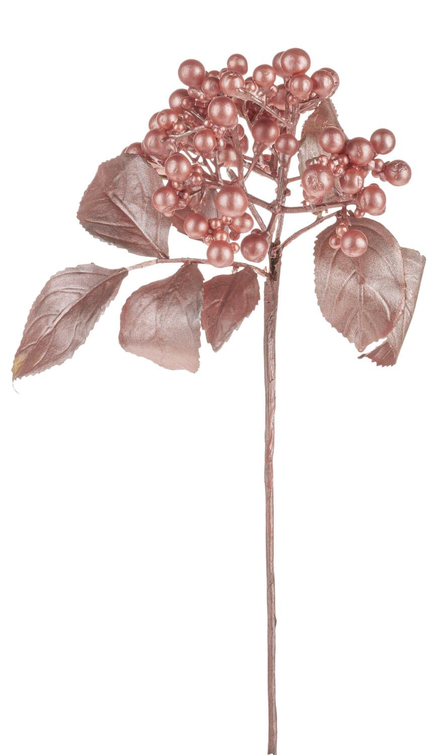 Decorative elderberry branch VIKTORINE with berries, metallic rose gold, 12"/30cm