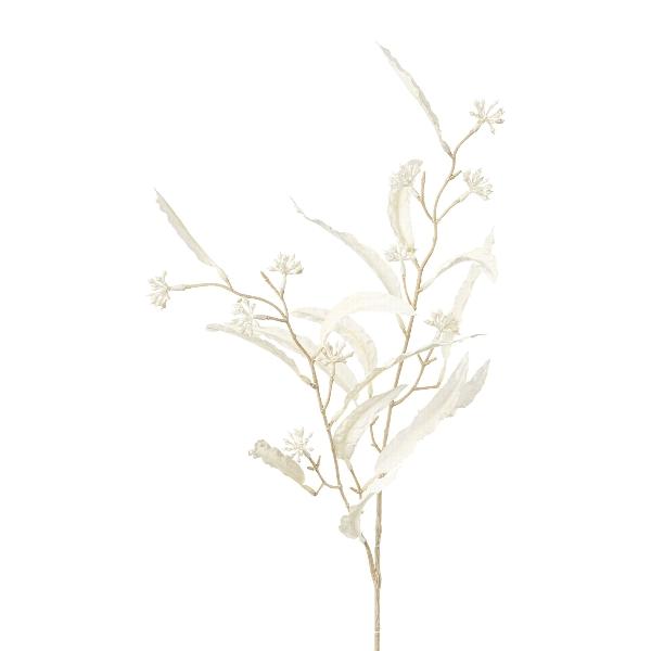 Decorative eucalyptus branch ZILFOR with flowers, white, 31"/80cm