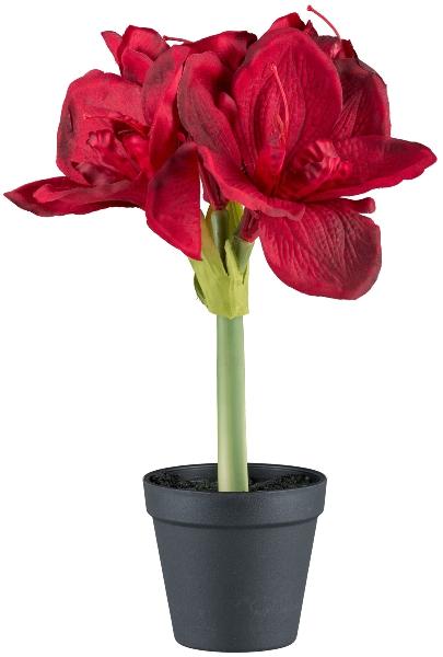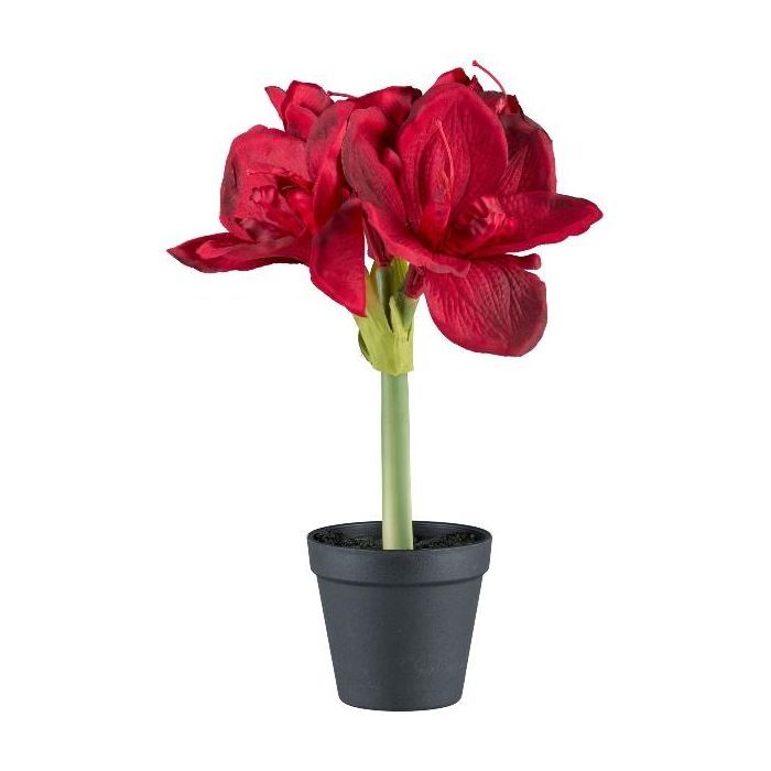 Decorative flower Amaryllis PRIFT in decorative pot, dark red, 12"/30cm