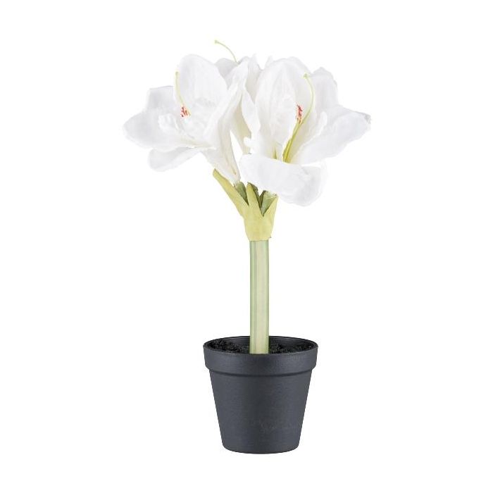 Decorative flower Amaryllis PRIFT in decorative pot, white, 12"/30cm