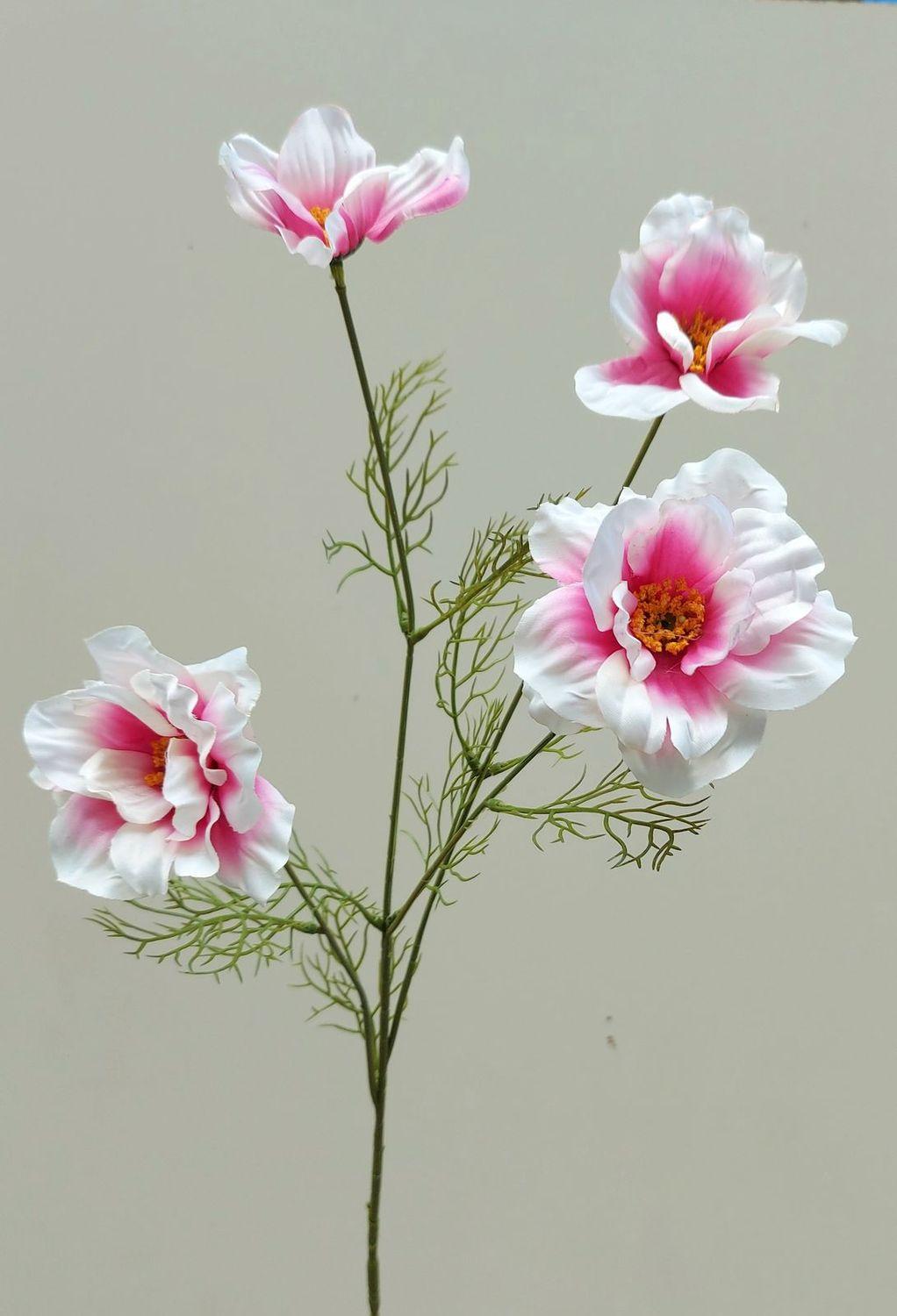 Decorative flower branch Cosmos PRESTIOSA, white-pink, 30"/75cm