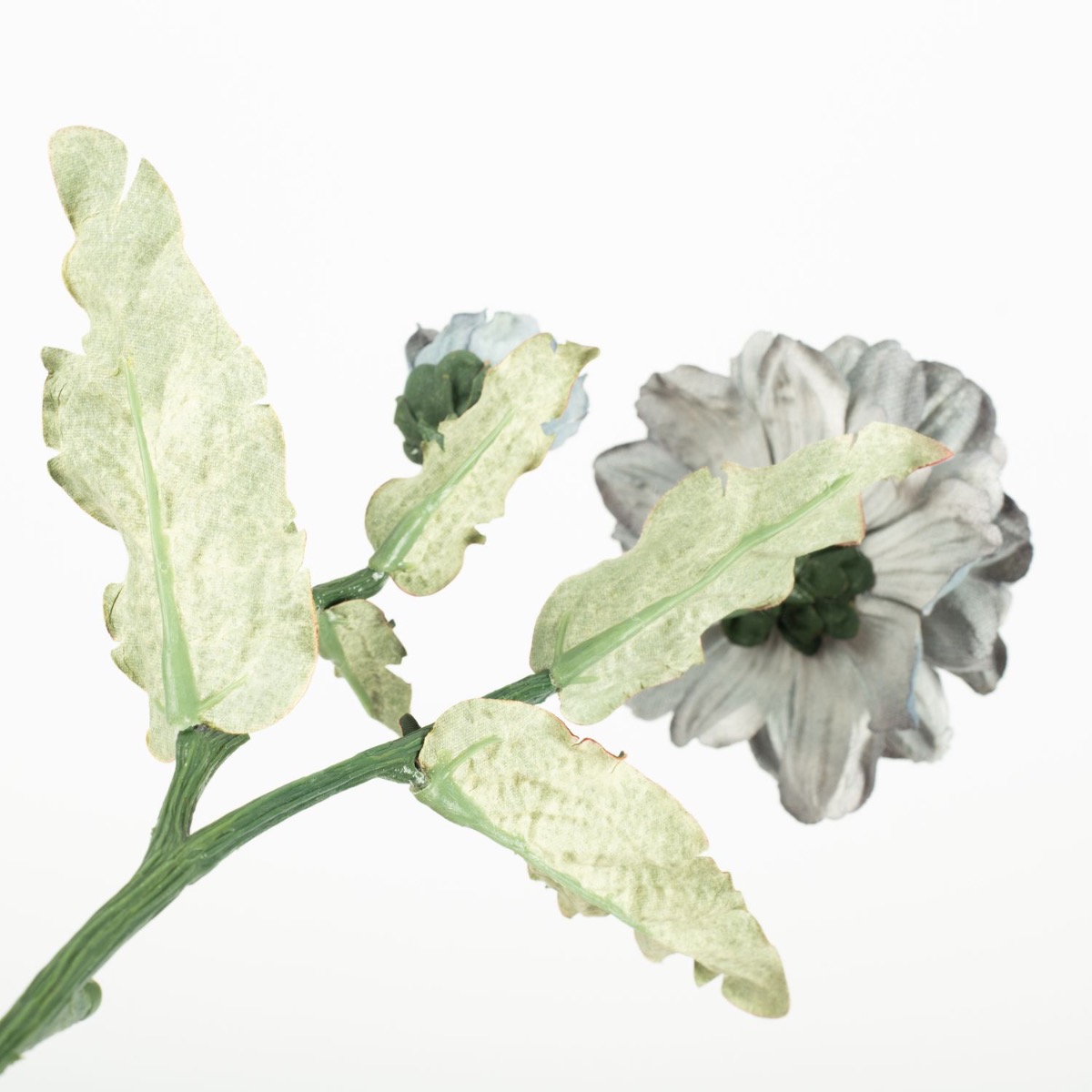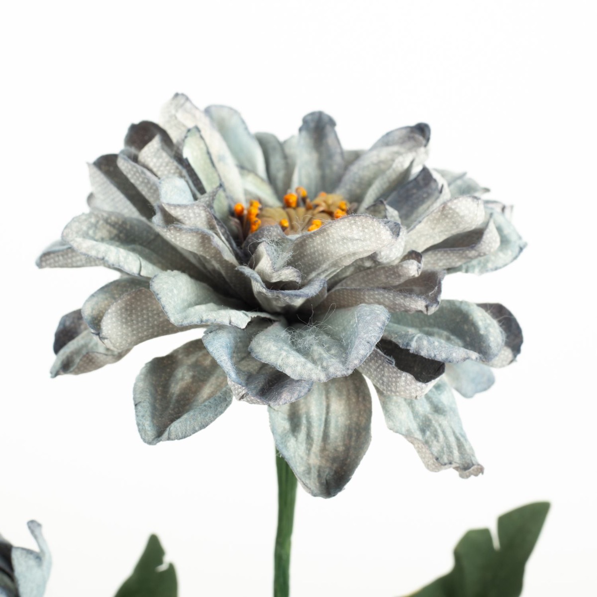 Decorative flower branch zinnia GUNDISINE, Eco Collection, grey-blue, 26"/65cm, Ø3.5"/9cm