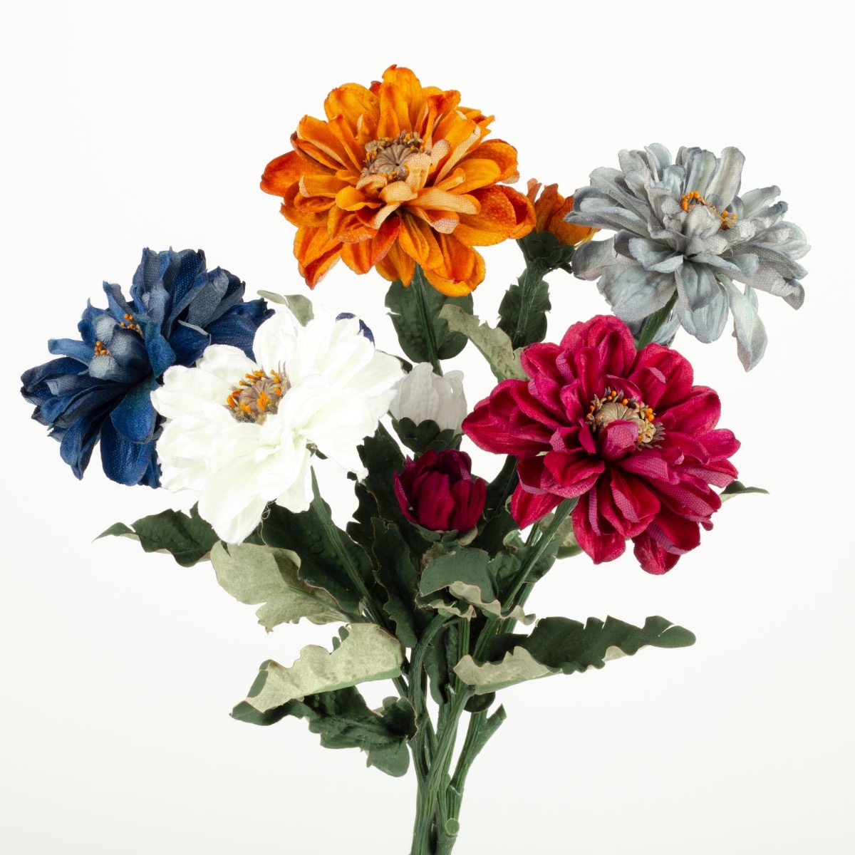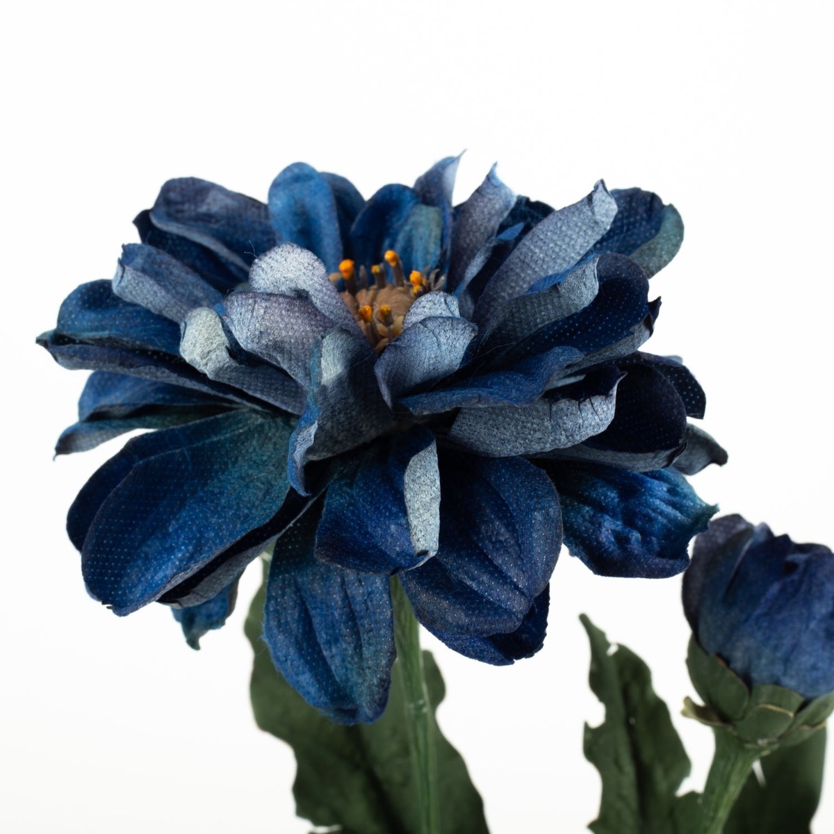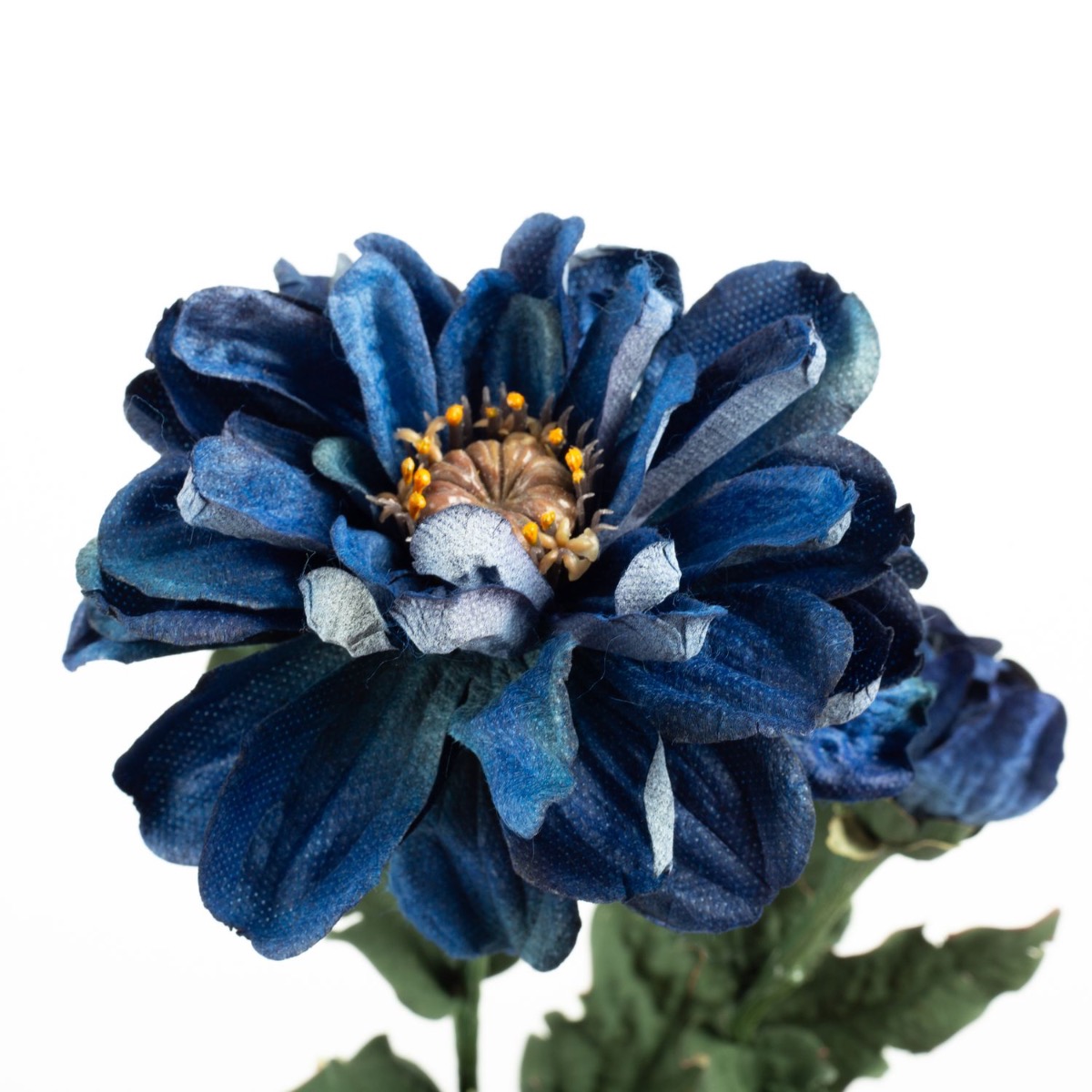 Decorative flower branch zinnia GUNDISINE, Eco Collection, royal blue, 26"/65cm, Ø3.5"/9cm
