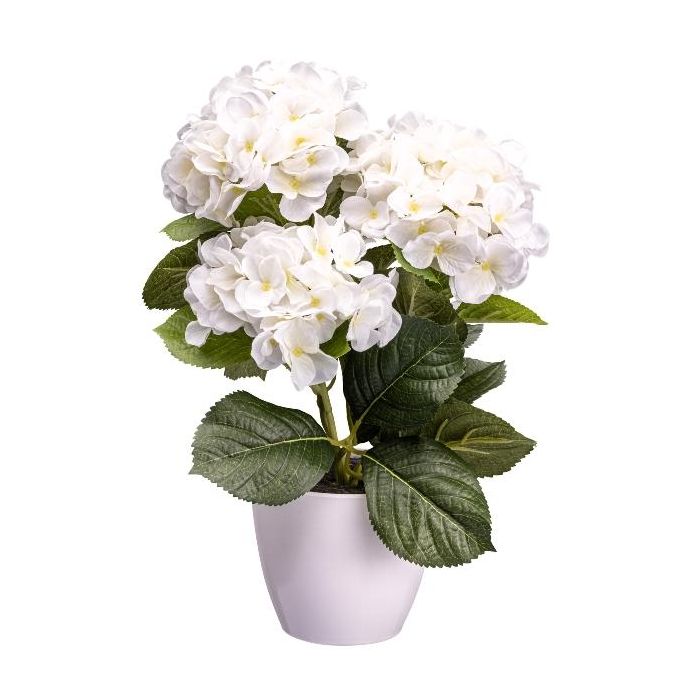 Decorative flower Hydrangea SLORFIN in a white decorative pot, white, 12"/30cm