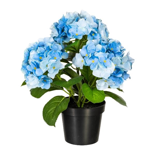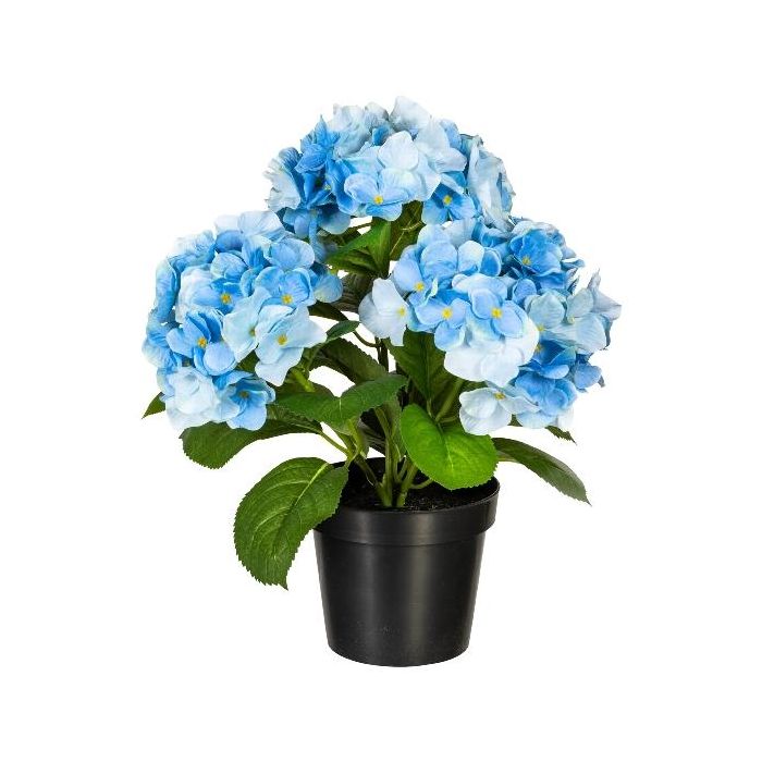 Decorative flower Hydrangea SLORFIN in black decorative pot, blue, 12"/30cm
