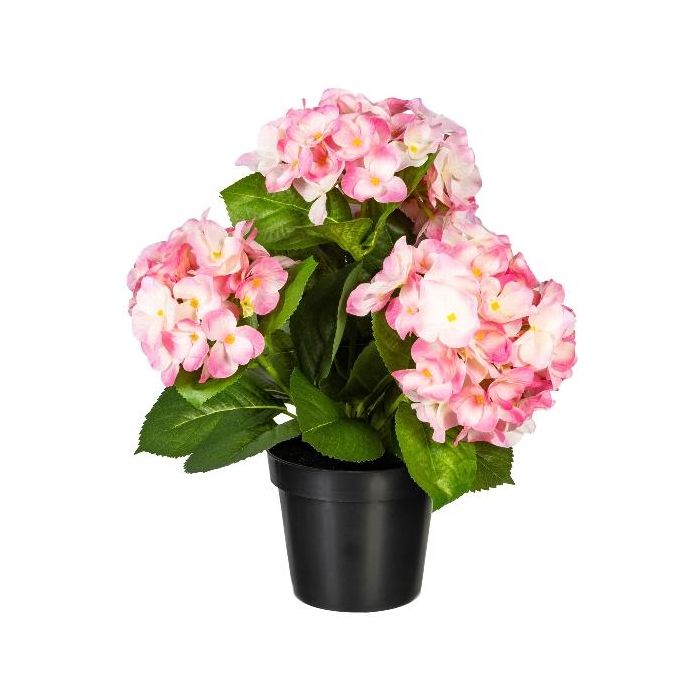 Decorative flower Hydrangea SLORFIN in black decorative pot, pink, 12"/30cm
