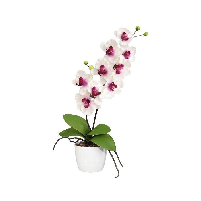 Decorative flower Phalaenopsis orchid MORLEK, ceramic pot, roots, white-purple, 24"/60cm