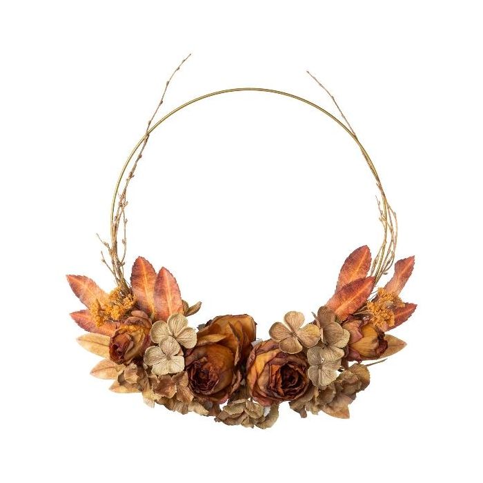 Decorative flower ring Autumn wreath WIMRA, hydrangea, rose, brown-orange, Ø20"/50cm