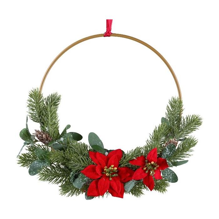 Decorative flower ring Poinsettia KIRLO, berries, cones, red, Ø16"/40cm