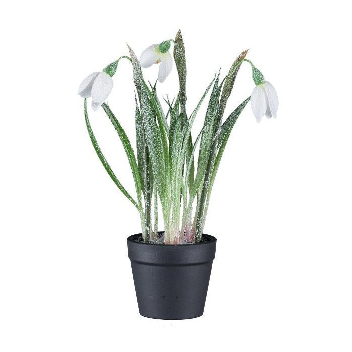 Decorative flower Snowdrop WASFA in decorative pot, snow-covered, white, 8"/20cm