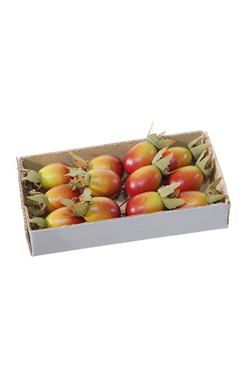 Decorative fruit rose hip ZENNY, 12 pieces, red-green, 0.8"/2cm
