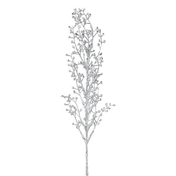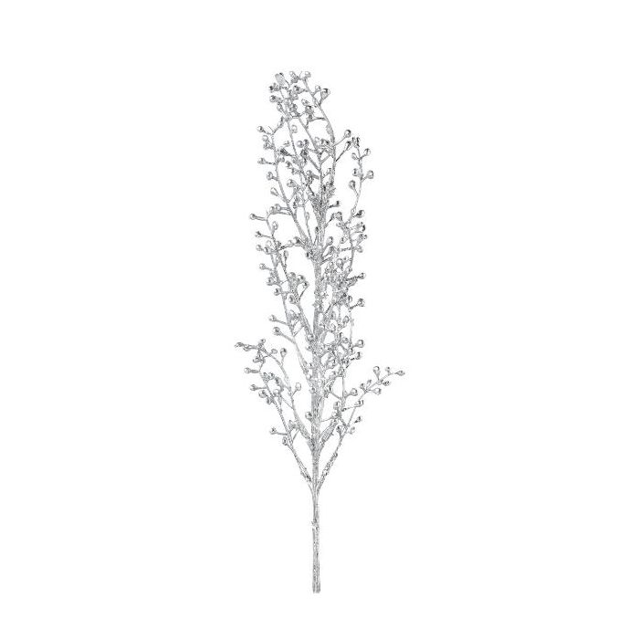 Decorative gaultheria branch BLERTO, berries, silver, 22"/55cm