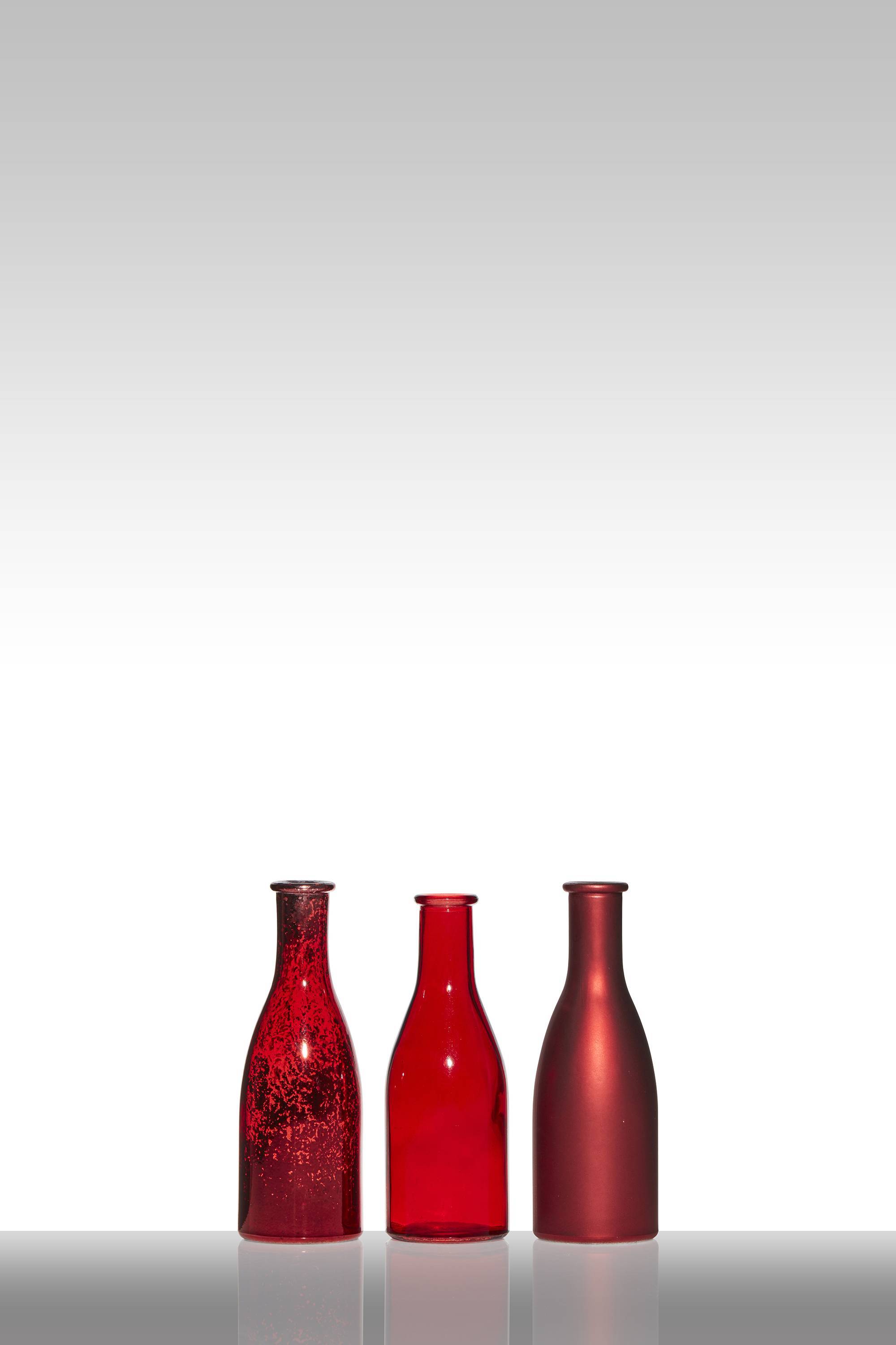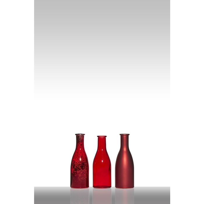Decorative glass bottles ANYA, 3 pcs, red, 7.3"/18,5cm, Ø2.6"/6,5cm