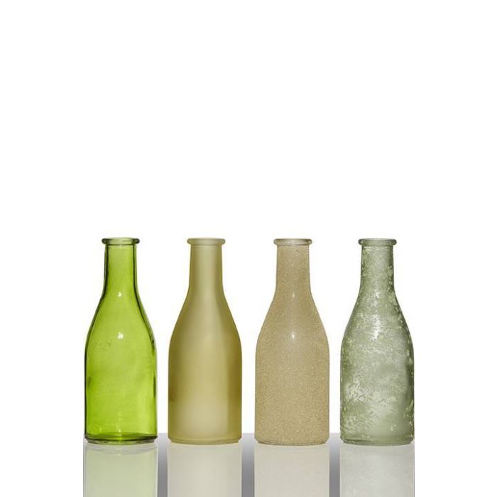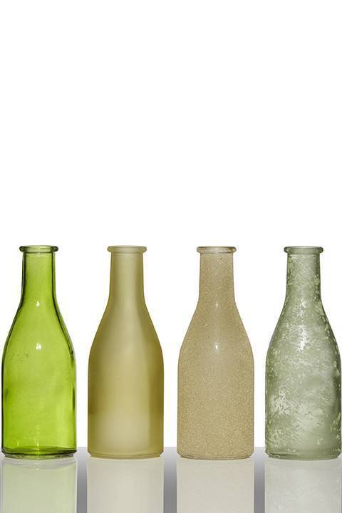 Decorative glass bottles ANYA, 4 pcs, green, 7"/18cm, Ø2.4"/6cm