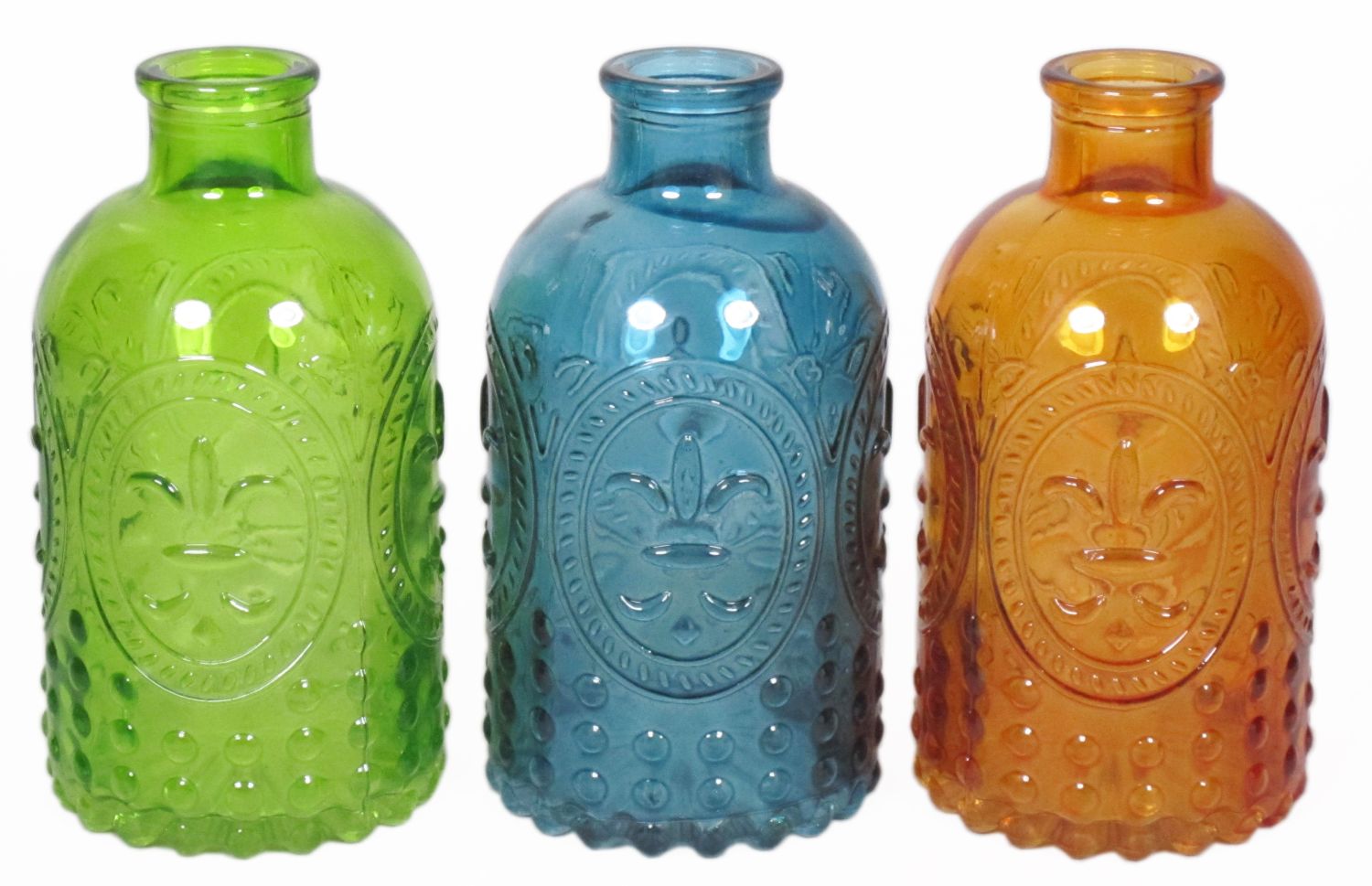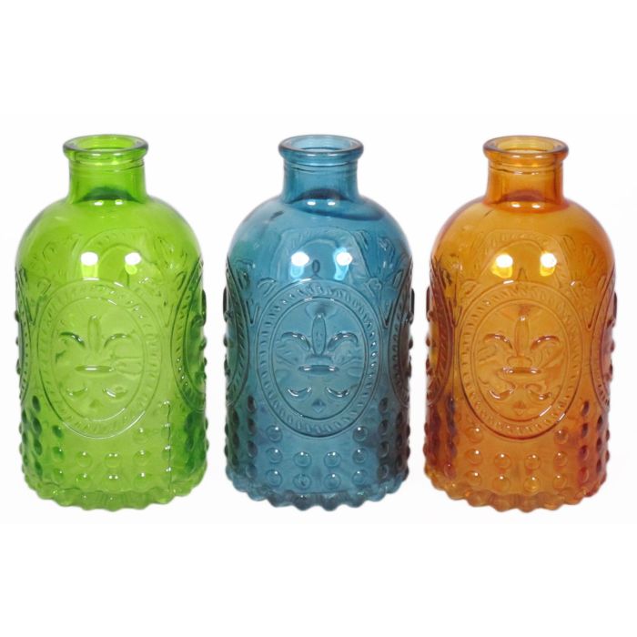 Decorative glass bottles URSULA with pattern, 3 glasses, coloured, 4.9"/12,5cm, Ø2.6"/6,5cm